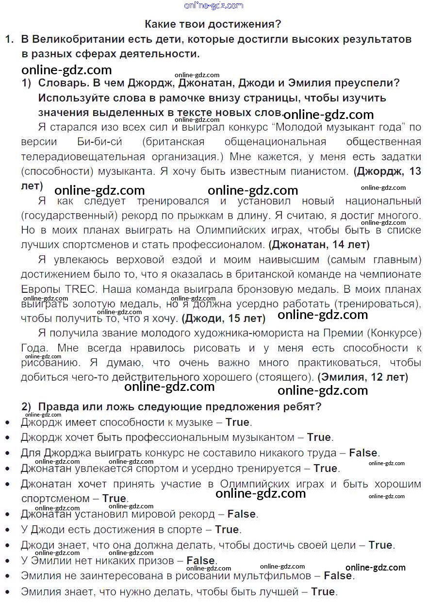 Готовые домашние задания по Английскому языку за 7 класс Учебник Кузовлев, Лапа УМК 2015 - Lesson 1 Unit 2. What are you good at? 1