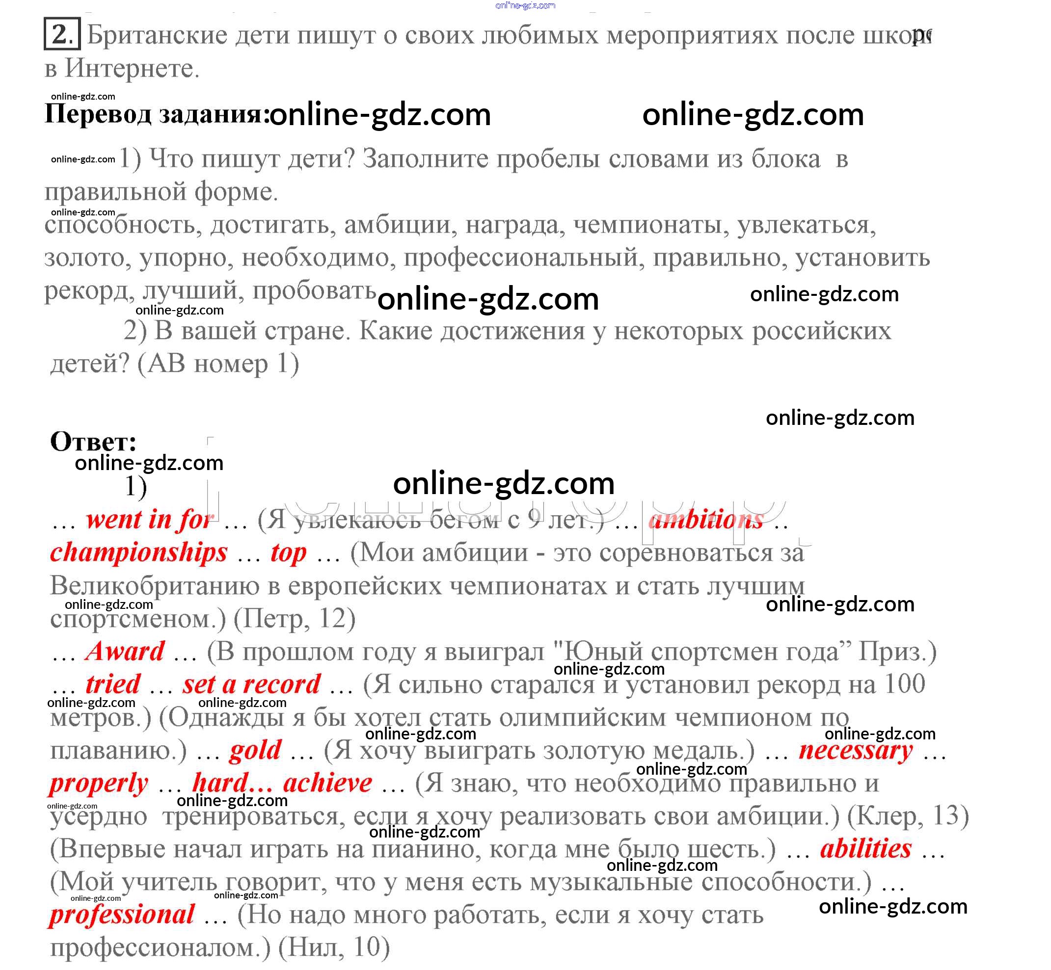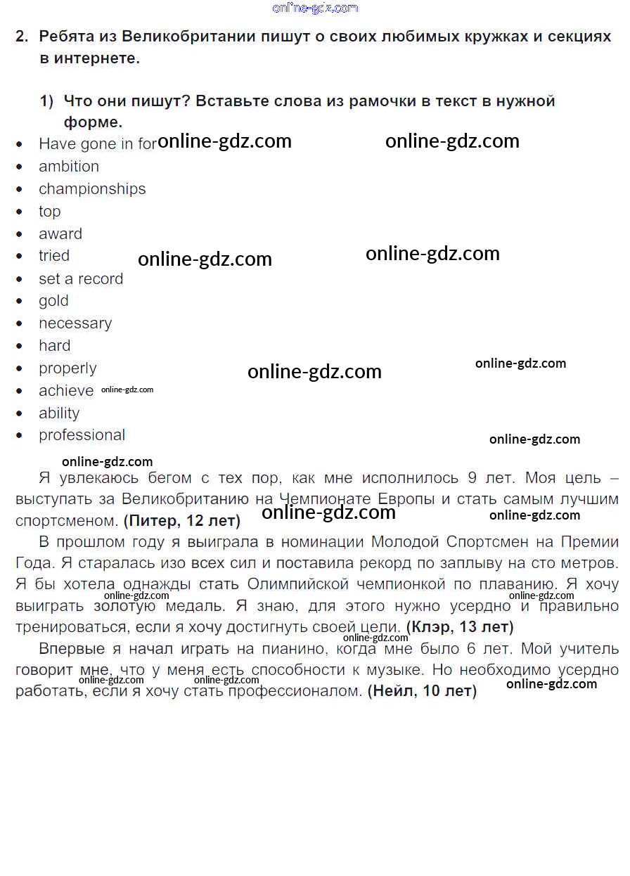 Готовые домашние задания по Английскому языку за 7 класс Учебник Кузовлев, Лапа УМК 2015 - Lesson 1 Unit 2. What are you good at? 2