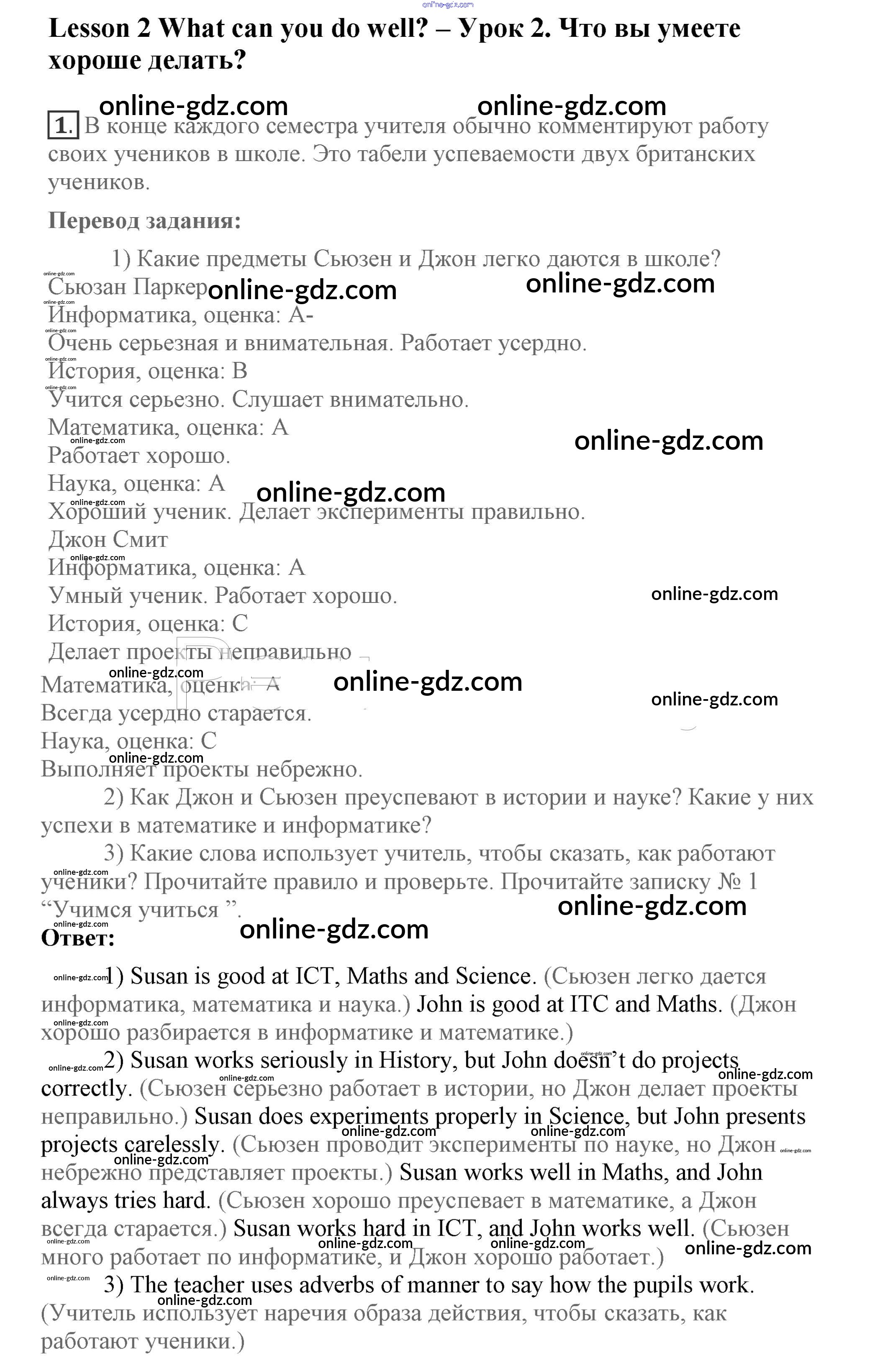 Готовые домашние задания по Английскому языку за 7 класс Учебник Кузовлев, Лапа УМК 2015 - Lesson 2 Unit 2. What are you good at? 1