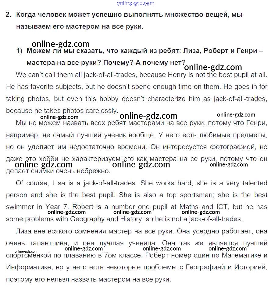 Готовые домашние задания по Английскому языку за 7 класс Учебник Кузовлев, Лапа УМК 2015 - Lesson 4 Unit 2. What are you good at? 2