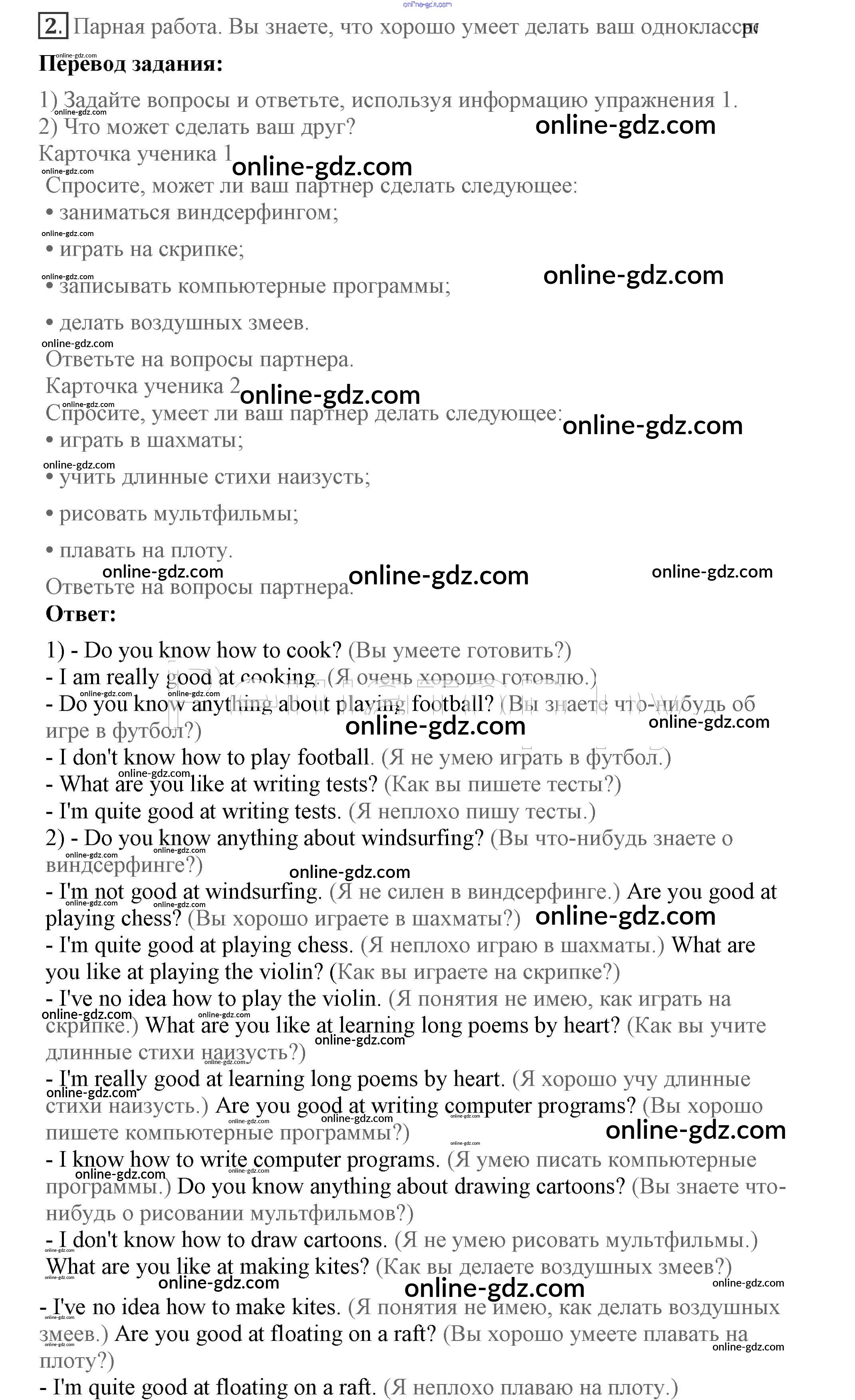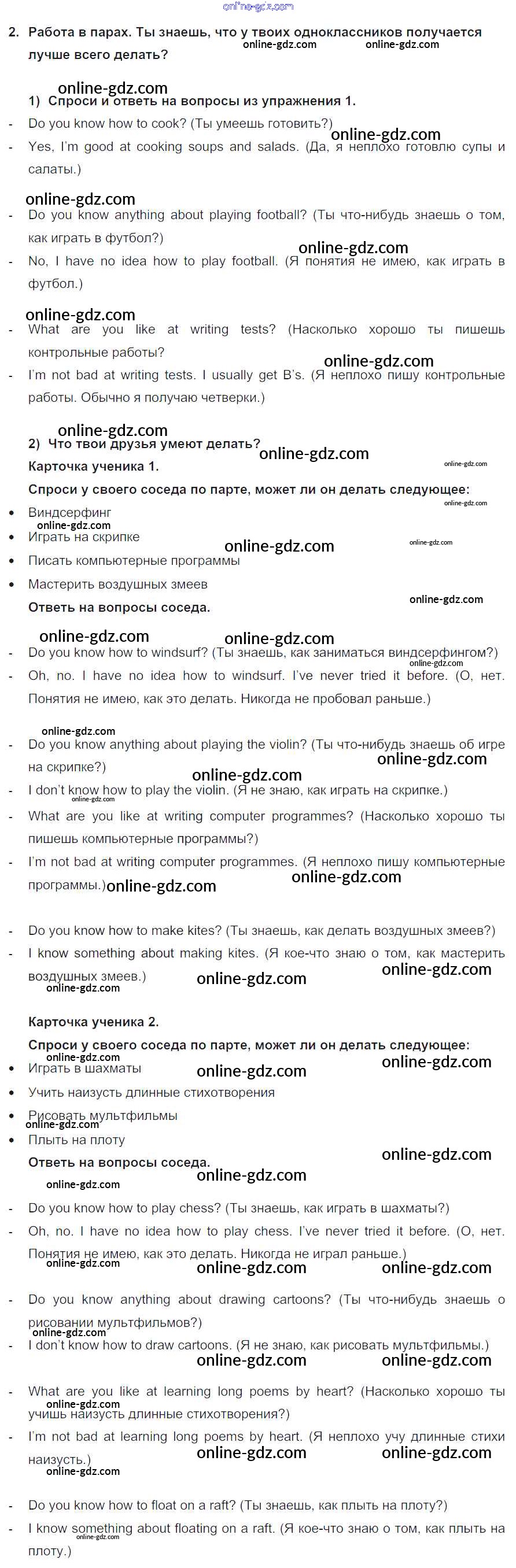 Готовые домашние задания по Английскому языку за 7 класс Учебник Кузовлев, Лапа УМК 2015 - Lesson 5 Unit 2. What are you good at? 2