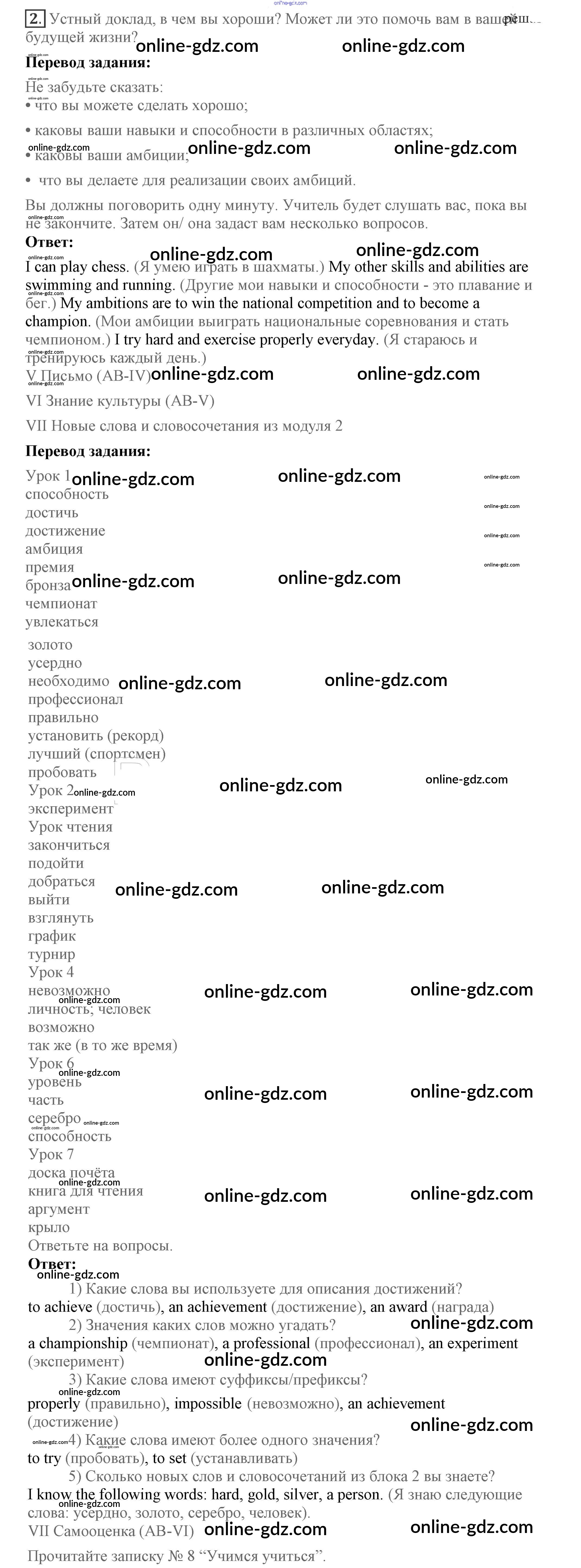 Готовые домашние задания по Английскому языку за 7 класс Учебник Кузовлев, Лапа УМК 2015 - Lesson 8 Unit 2. What are you good at? 2