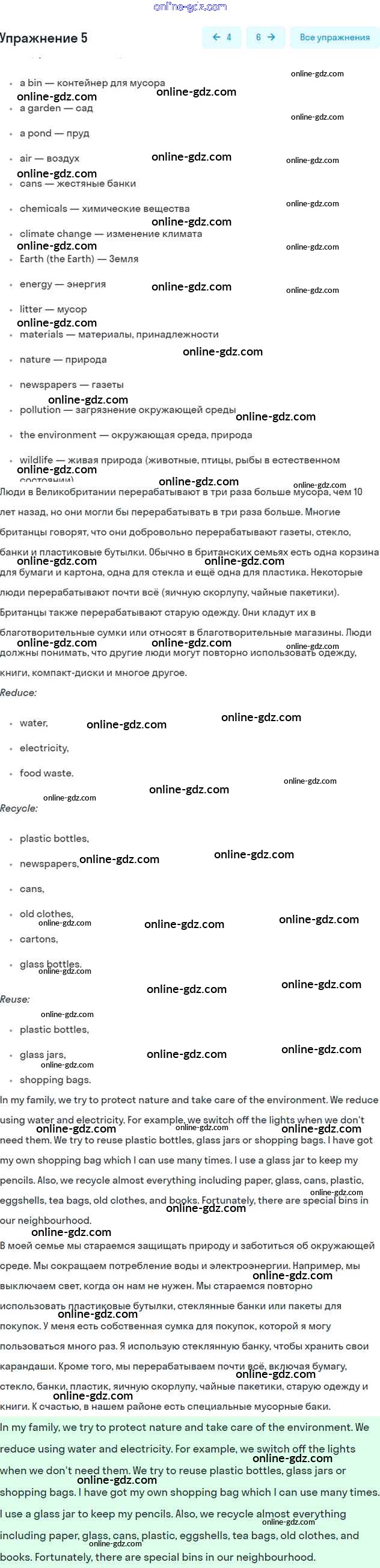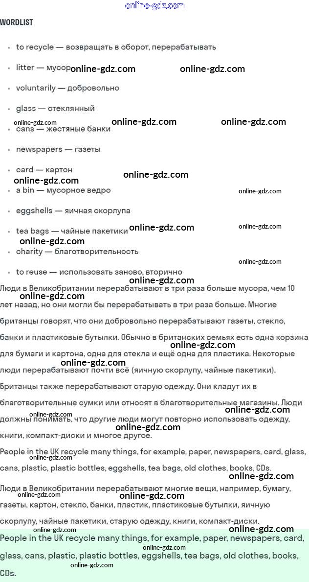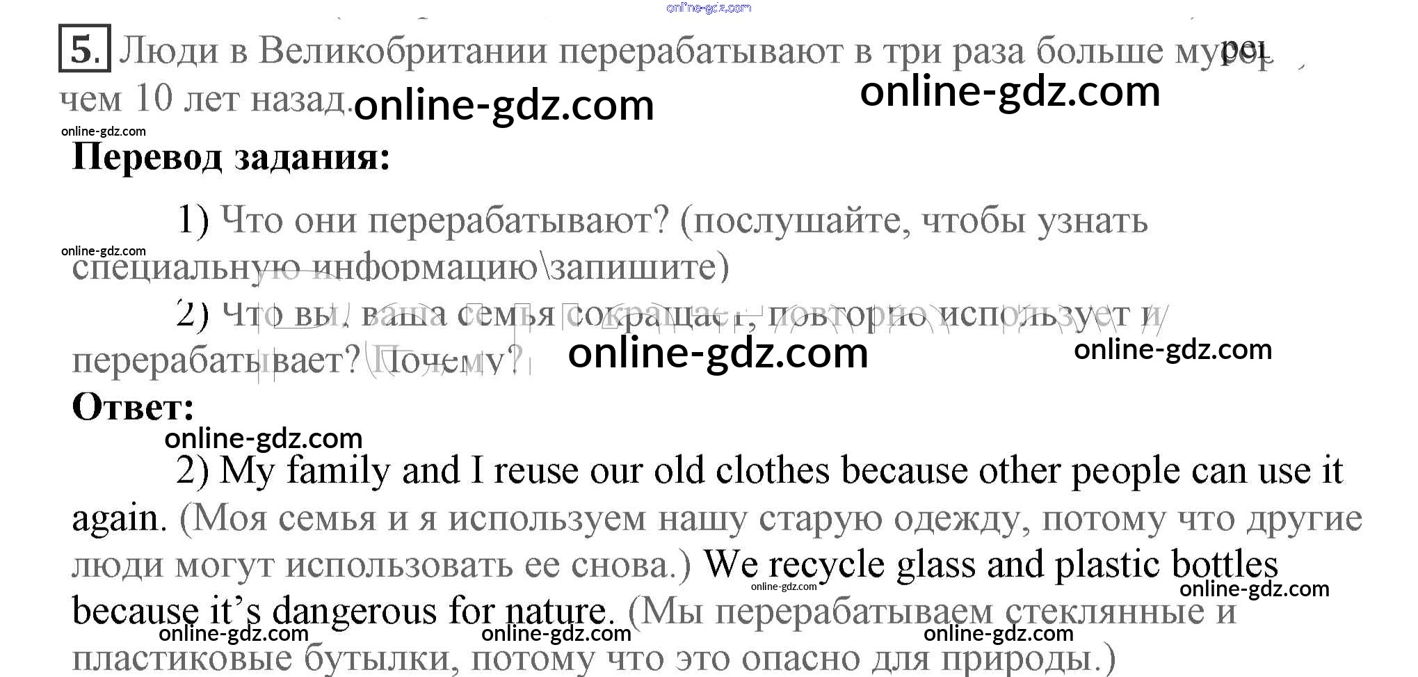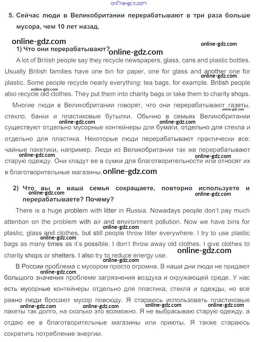 Готовые домашние задания по Английскому языку за 7 класс Учебник Кузовлев, Лапа УМК 2015 - Lesson 1 Unit 4. Are you a friend of the planet? 5