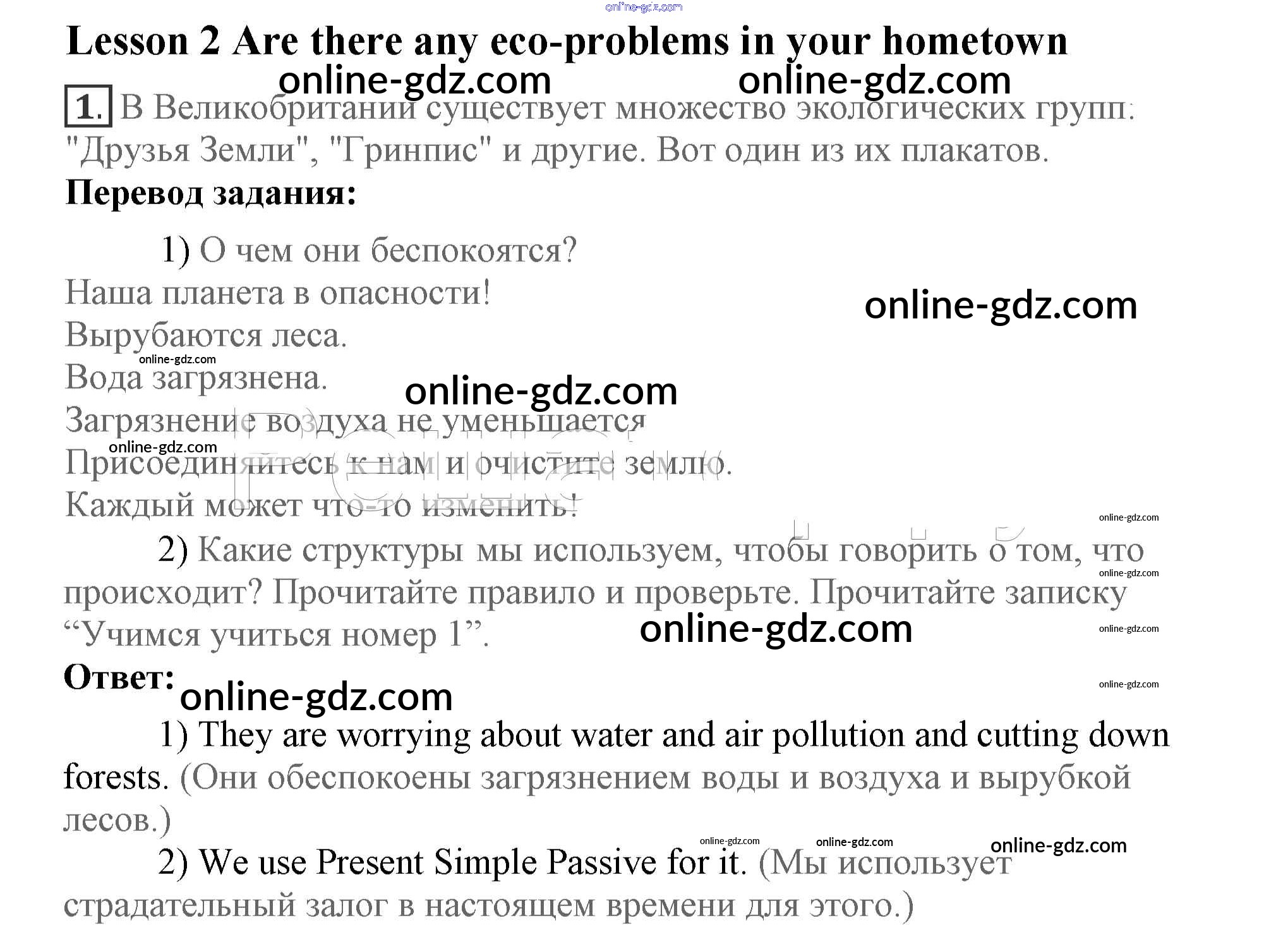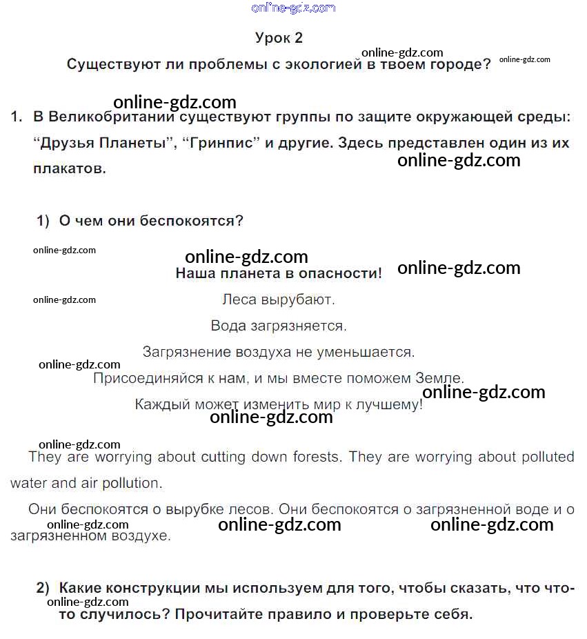 Готовые домашние задания по Английскому языку за 7 класс Учебник Кузовлев, Лапа УМК 2015 - Lesson 2 Unit 4. Are you a friend of the planet? 1