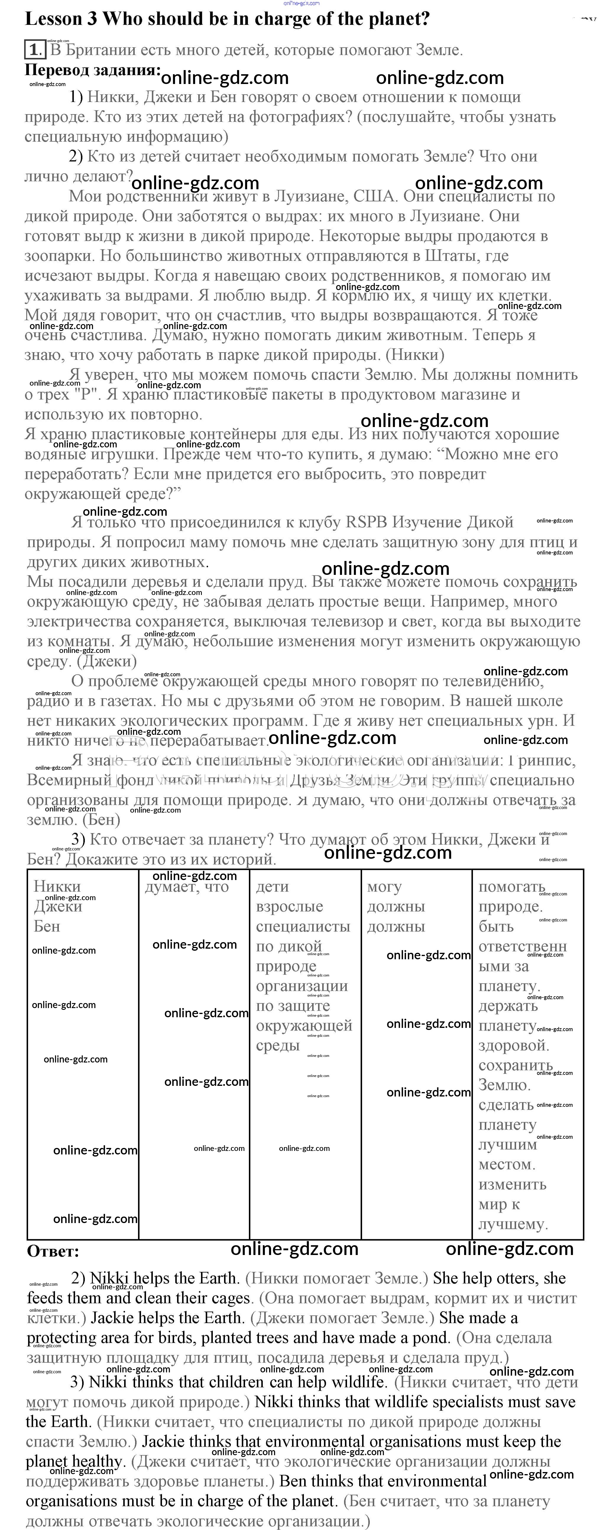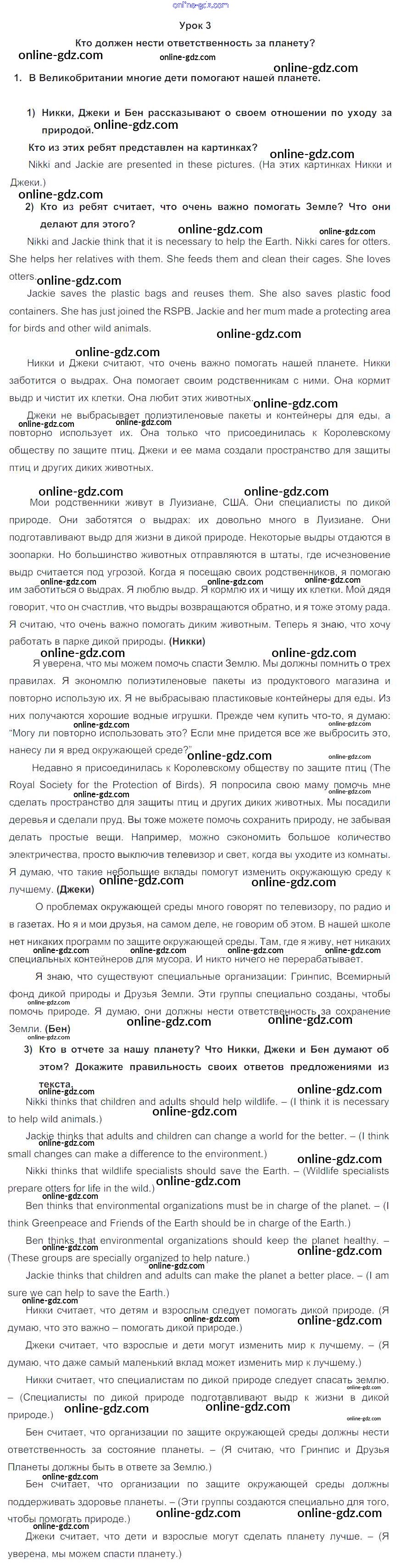 Готовые домашние задания по Английскому языку за 7 класс Учебник Кузовлев, Лапа УМК 2015 - Lesson 3 Unit 4. Are you a friend of the planet? 1