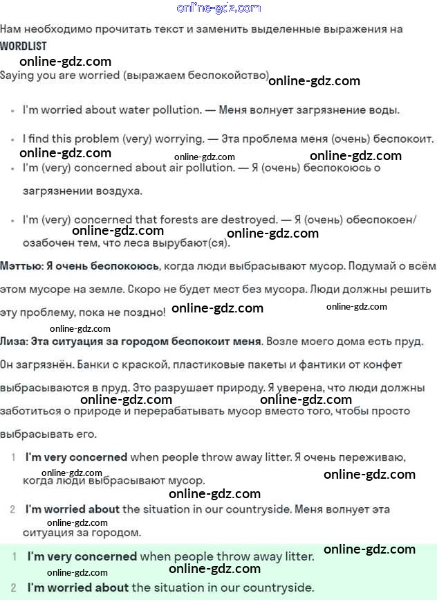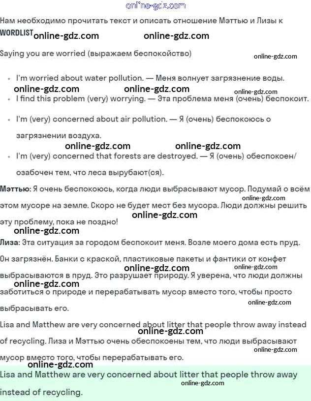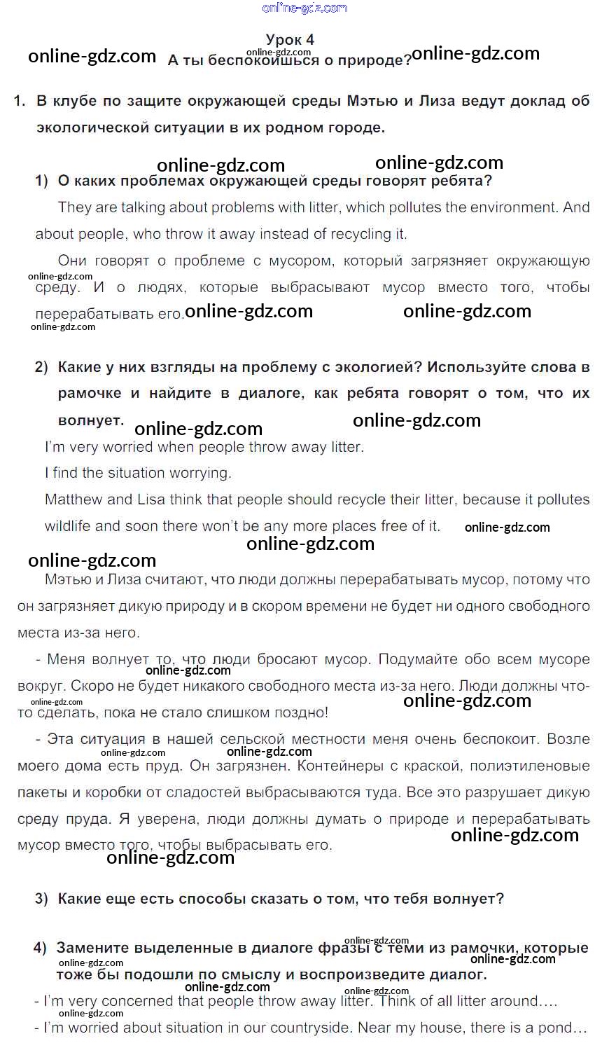Готовые домашние задания по Английскому языку за 7 класс Учебник Кузовлев, Лапа УМК 2015 - Lesson 4 Unit 4. Are you a friend of the planet? 1