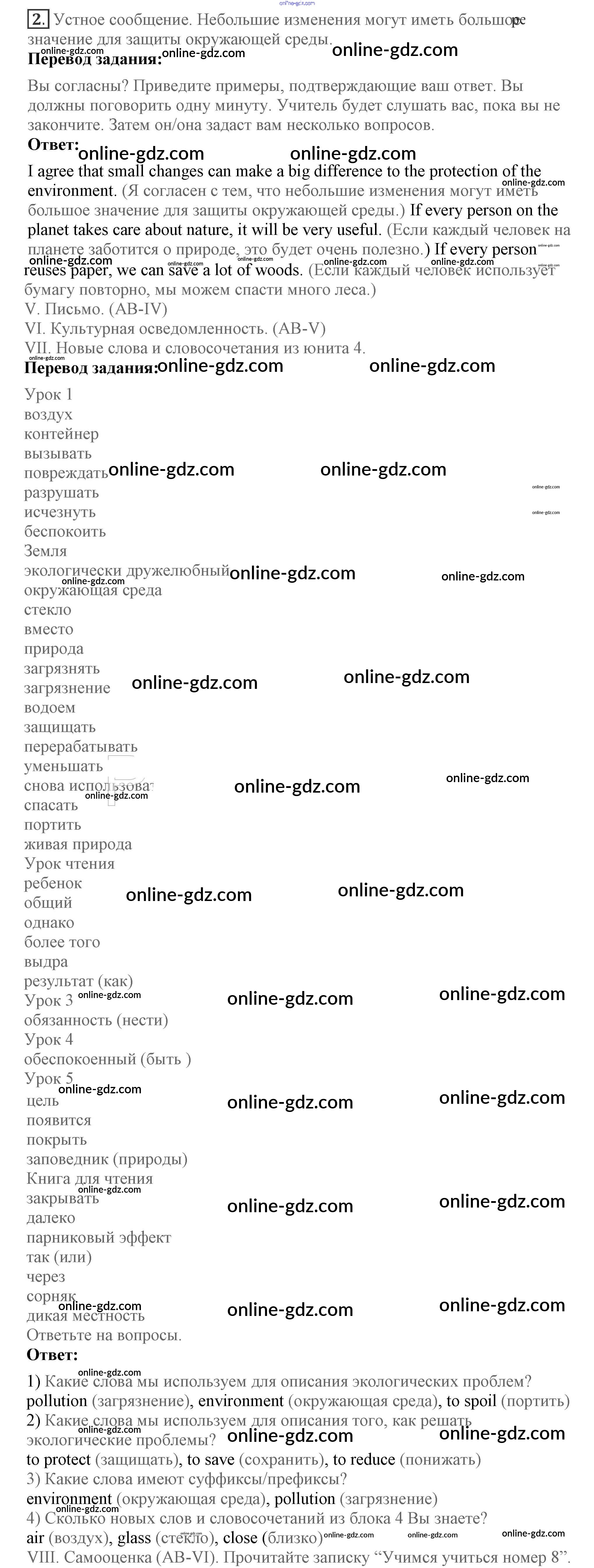Готовые домашние задания по Английскому языку за 7 класс Учебник Кузовлев, Лапа УМК 2015 - Lesson 7 Unit 4. Are you a friend of the planet? 2