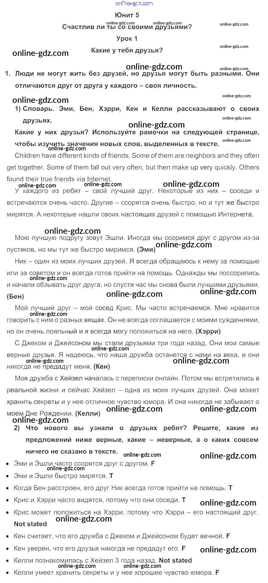 Готовые домашние задания по Английскому языку за 7 класс Учебник Кузовлев, Лапа УМК 2015 - Lesson 1 Unit 5. Are you happy with your friends? 1