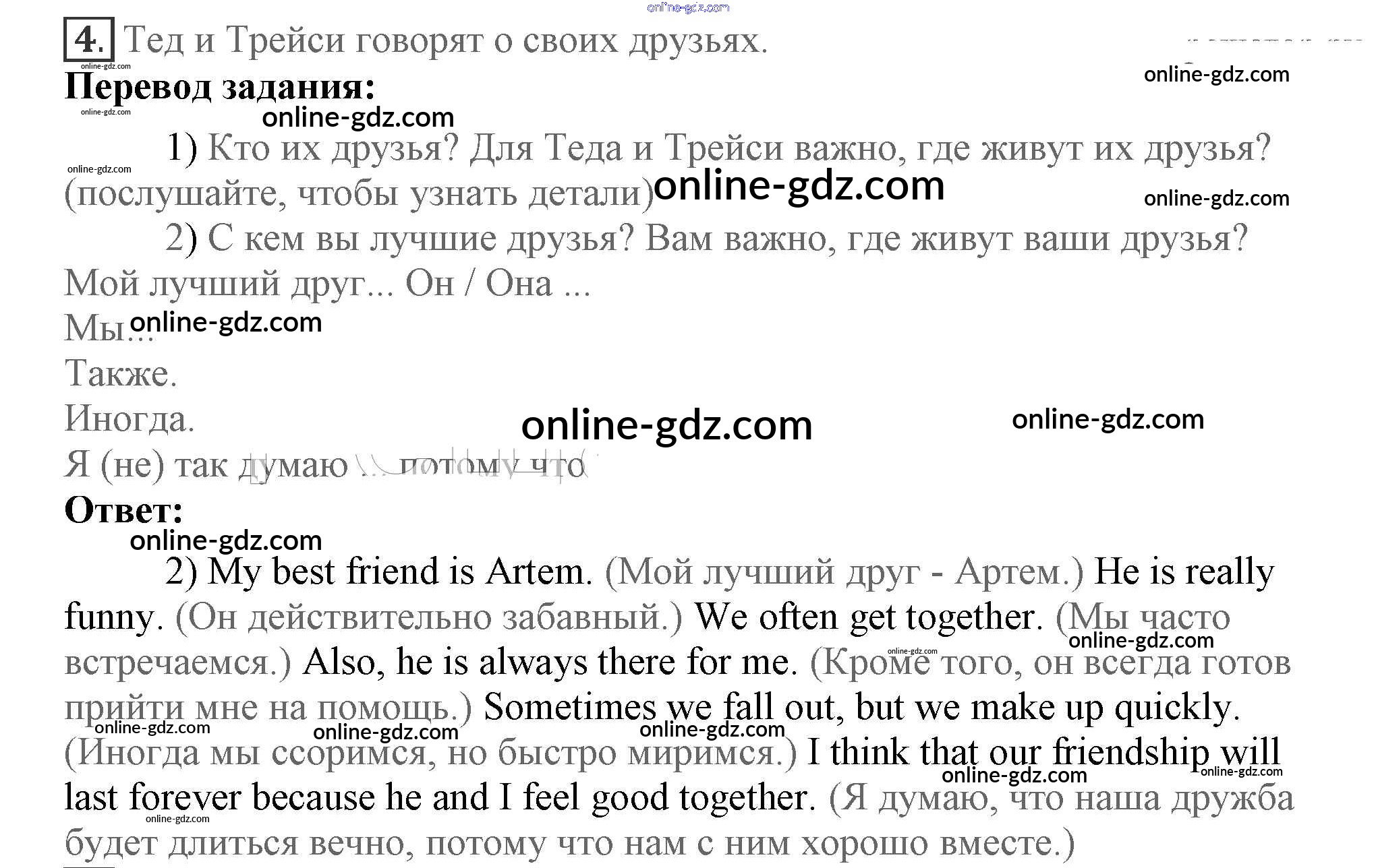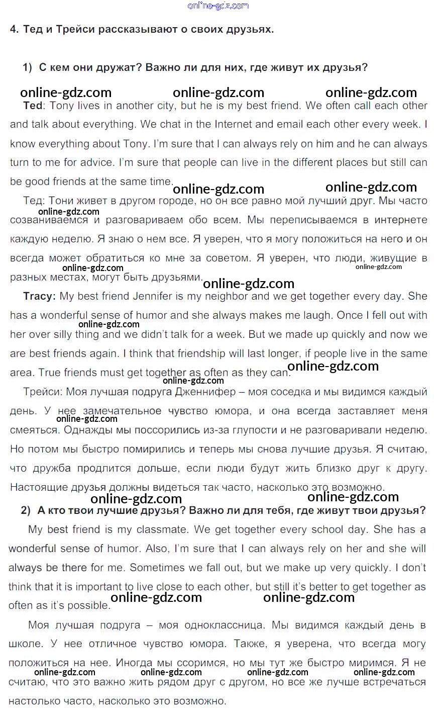 Готовые домашние задания по Английскому языку за 7 класс Учебник Кузовлев, Лапа УМК 2015 - Lesson 1 Unit 5. Are you happy with your friends? 4