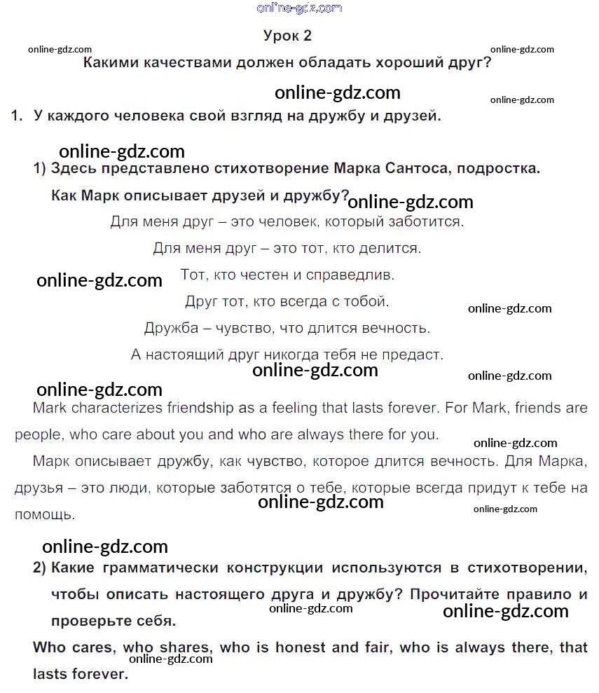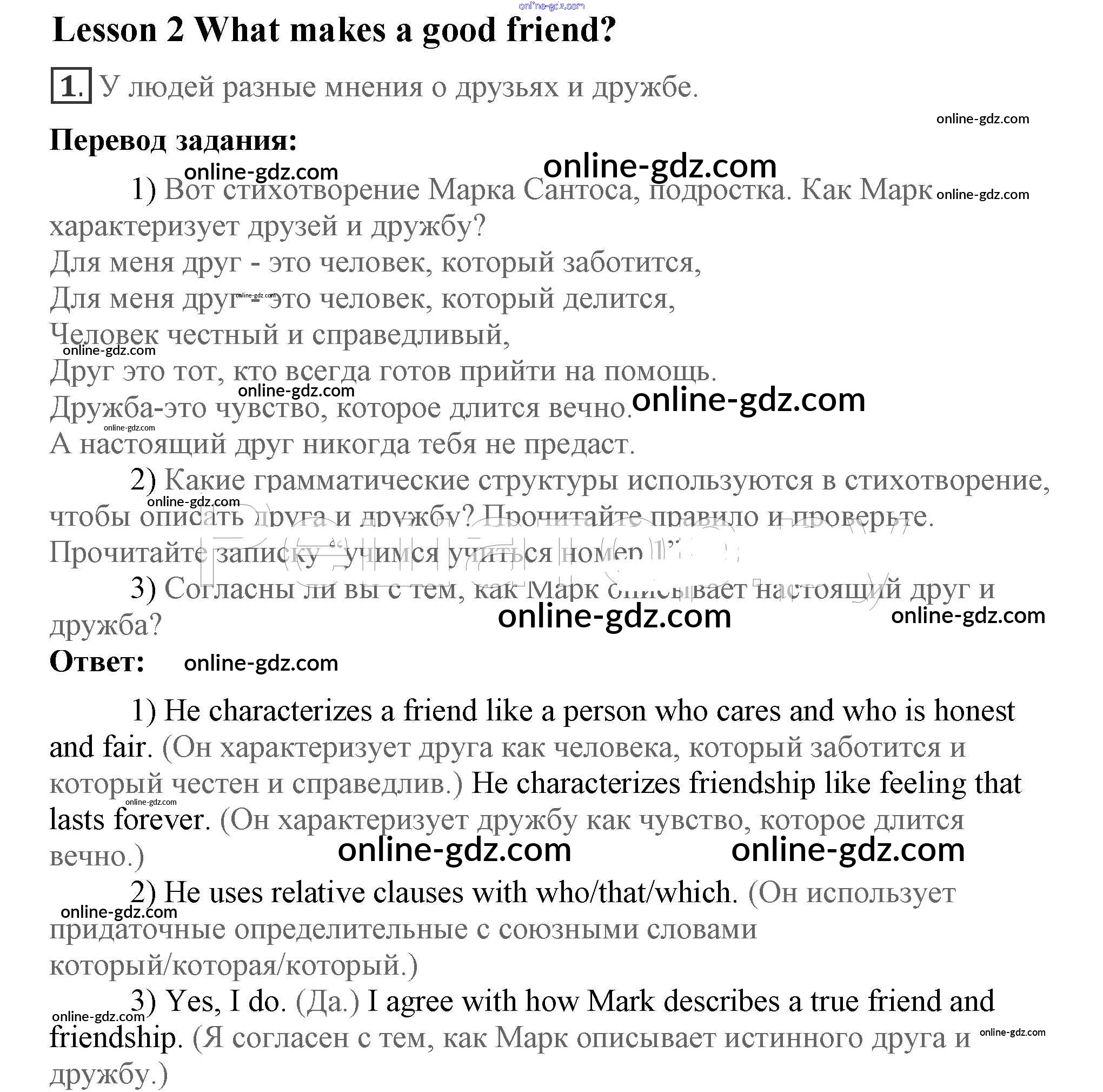 Готовые домашние задания по Английскому языку за 7 класс Учебник Кузовлев, Лапа УМК 2015 - Lesson 2 Unit 5. Are you happy with your friends? 1