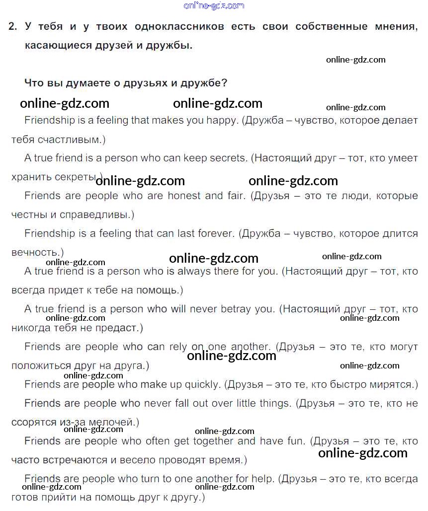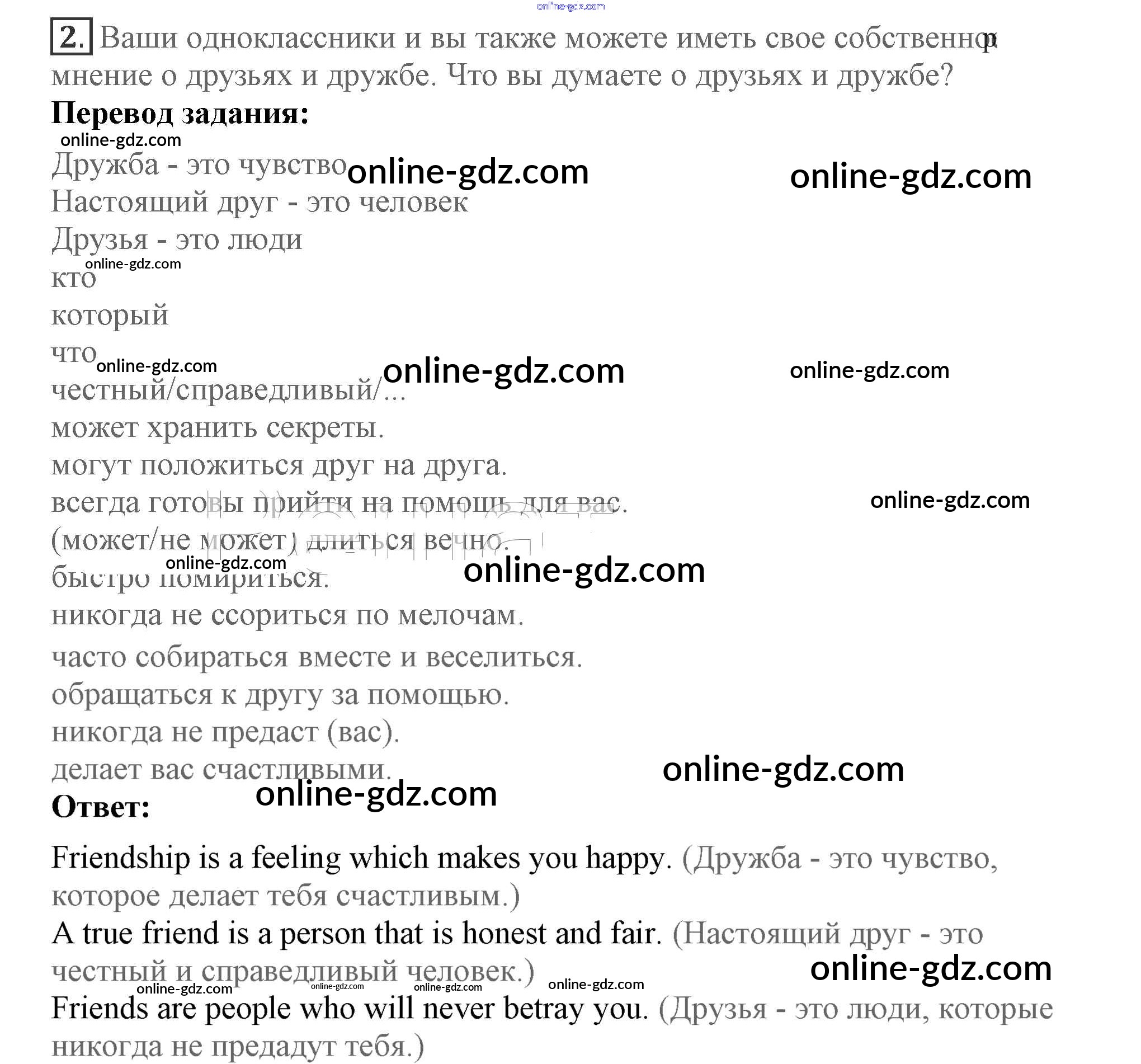 Готовые домашние задания по Английскому языку за 7 класс Учебник Кузовлев, Лапа УМК 2015 - Lesson 2 Unit 5. Are you happy with your friends? 2