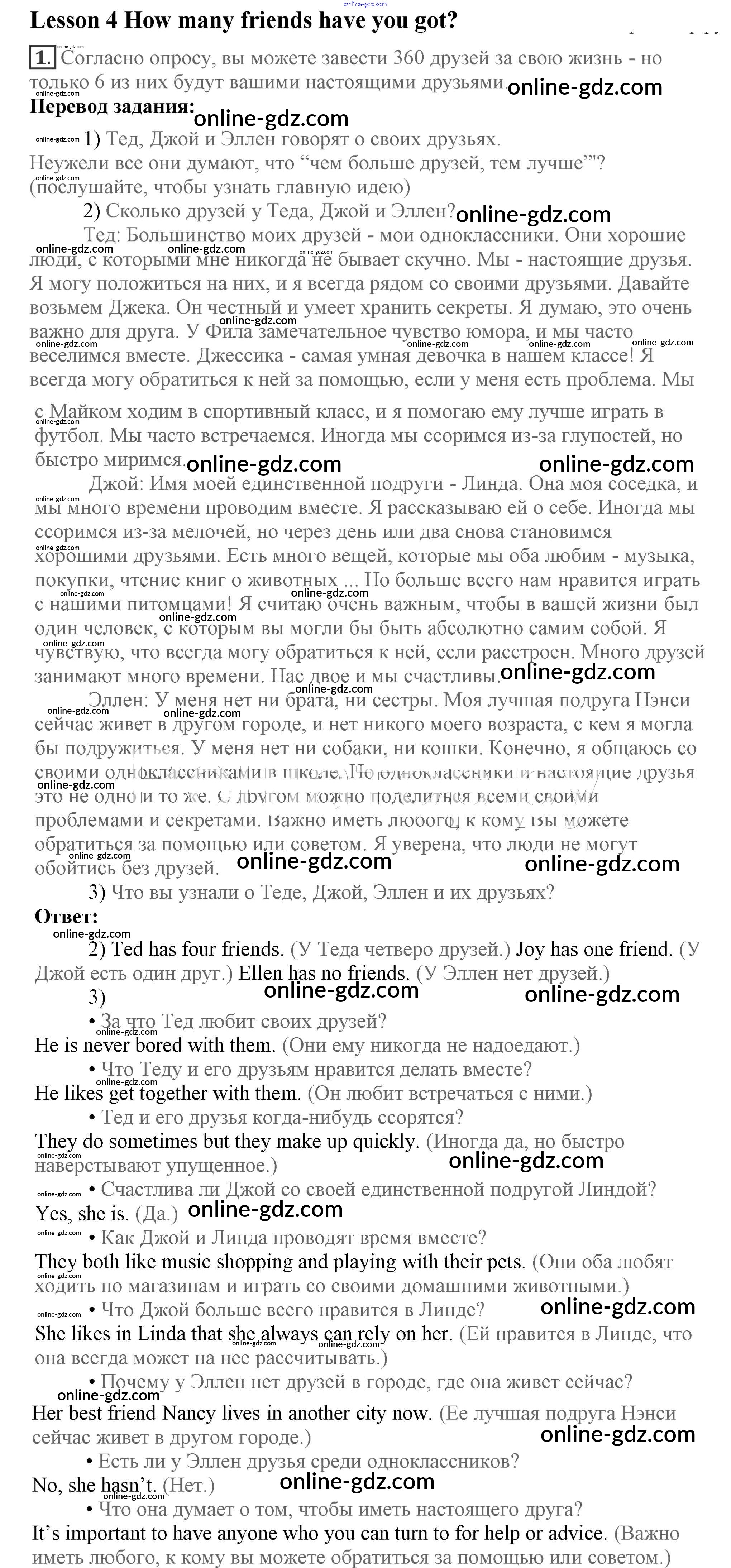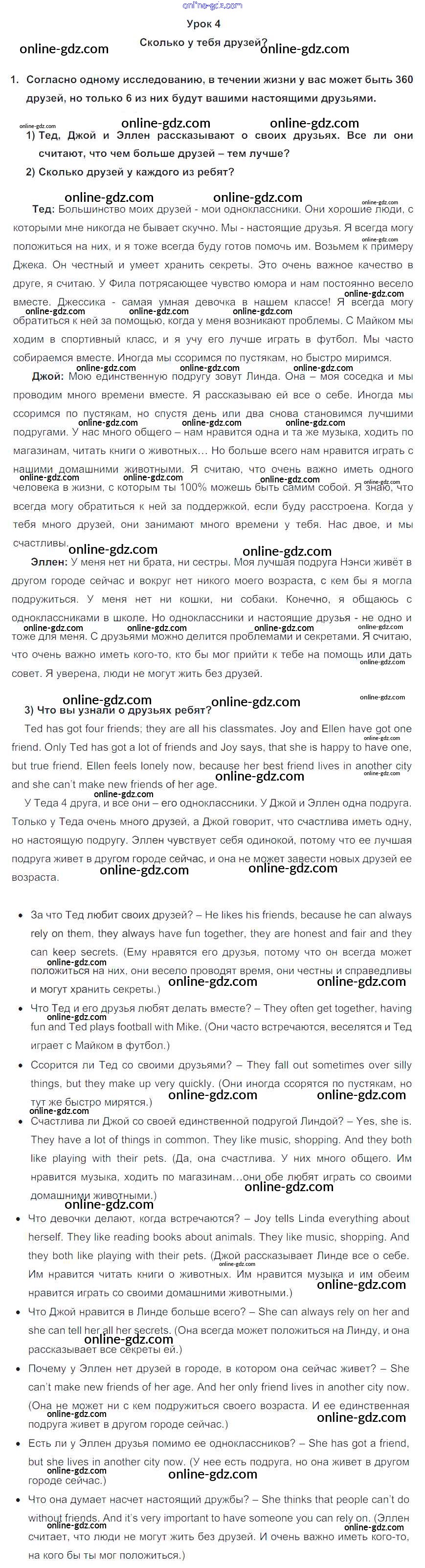 Готовые домашние задания по Английскому языку за 7 класс Учебник Кузовлев, Лапа УМК 2015 - Lesson 4 Unit 5. Are you happy with your friends? 1