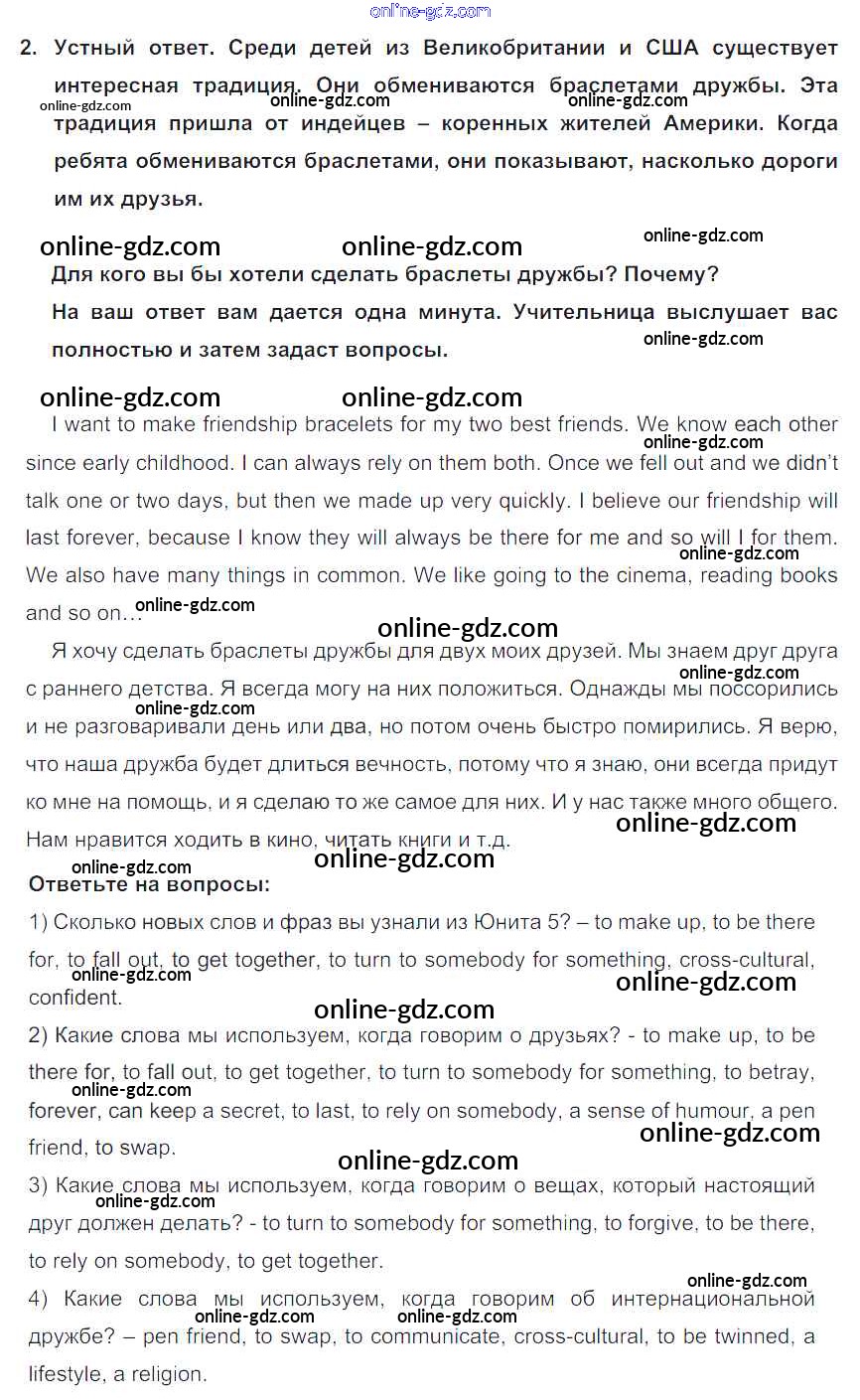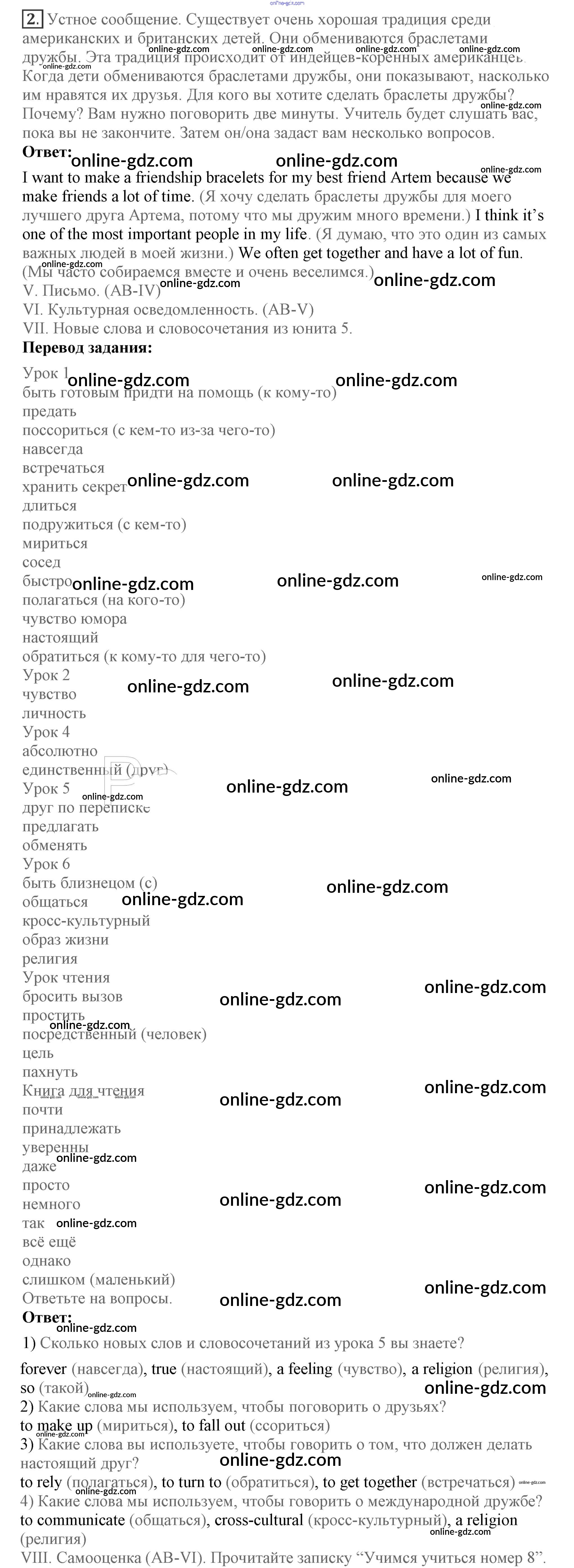 Готовые домашние задания по Английскому языку за 7 класс Учебник Кузовлев, Лапа УМК 2015 - Lesson 8 Unit 5. Are you happy with your friends? 2