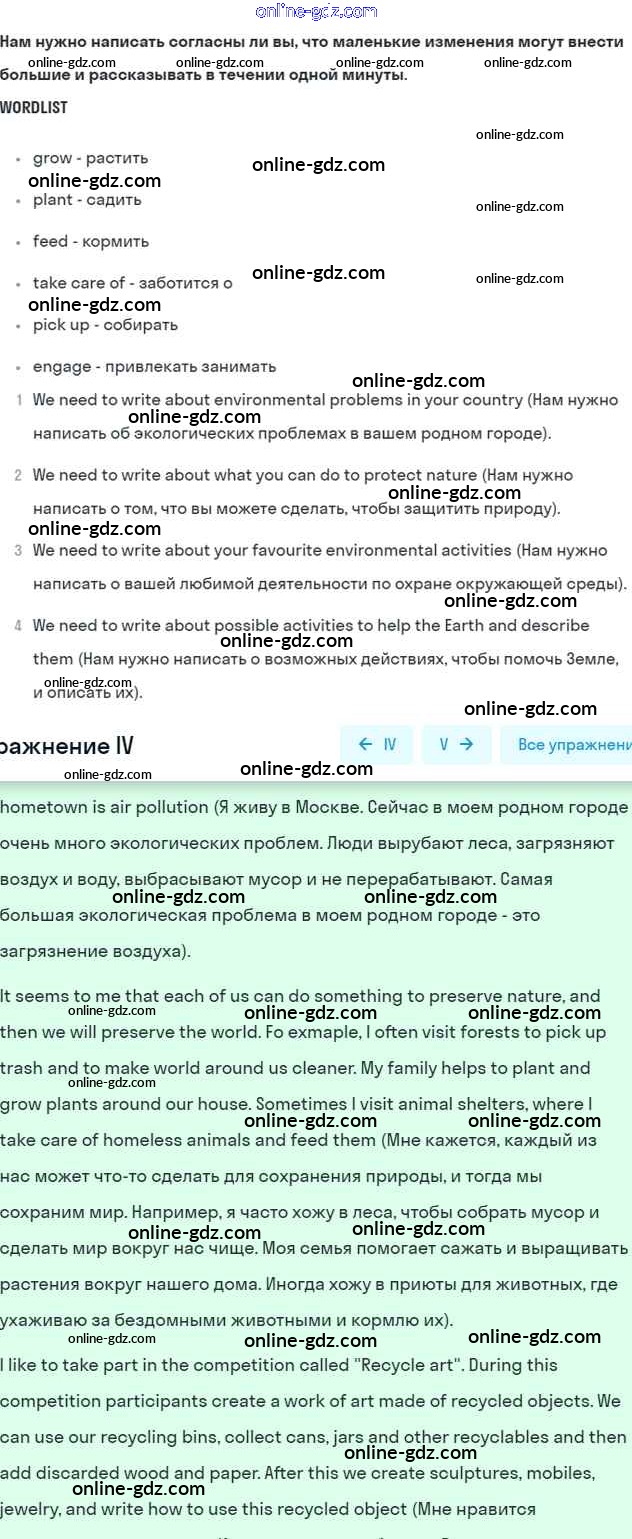 Готовые домашние задания по Английскому языку за 7 класс Учебник Кузовлев, Лапа УМК 2015 - Lesson 7 Unit 4. Are you a friend of the planet? 4