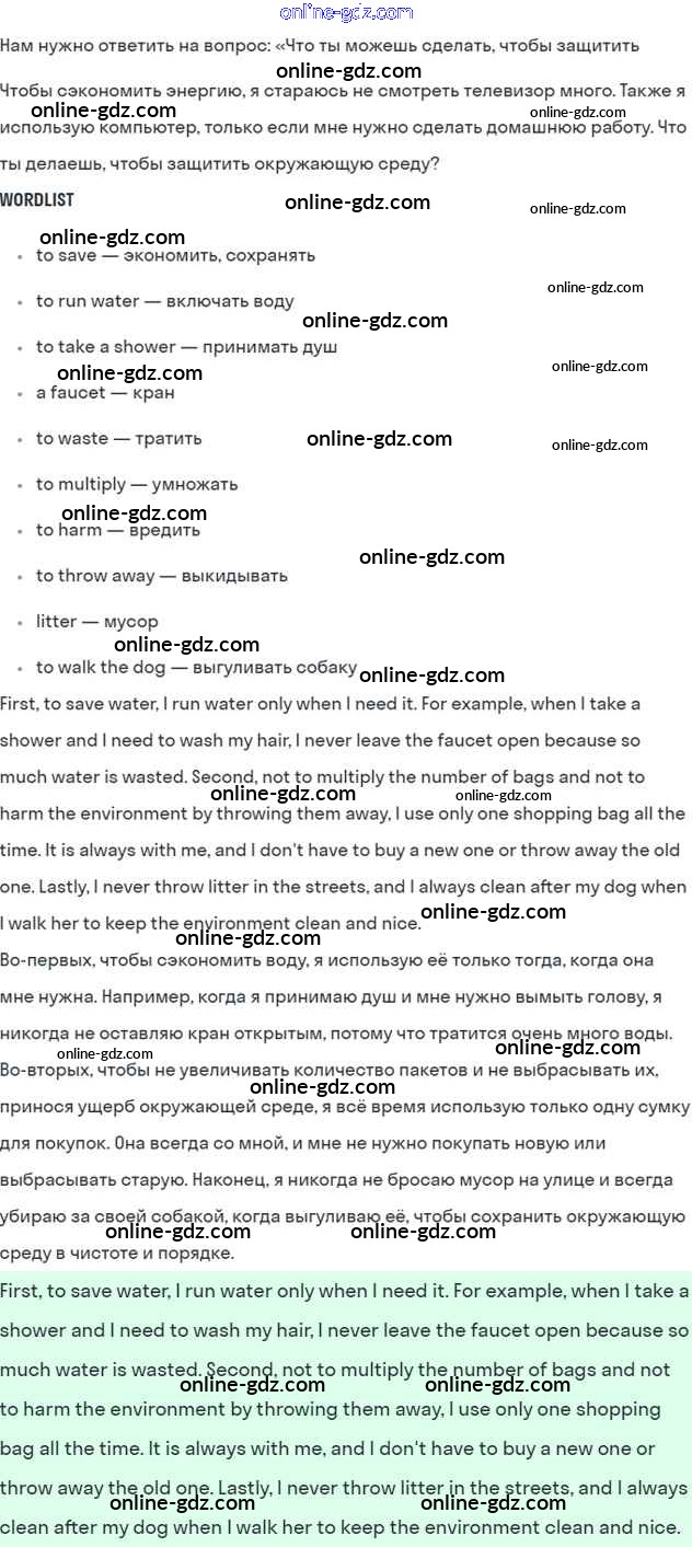 Готовые домашние задания по Английскому языку за 7 класс Учебник Кузовлев, Лапа УМК 2015 - Lesson 7 Unit 4. Are you a friend of the planet? 5