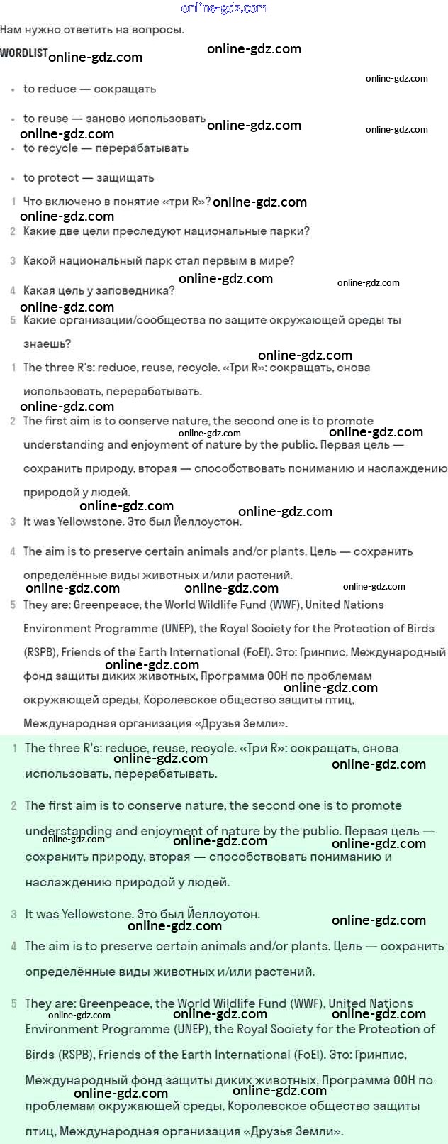 Готовые домашние задания по Английскому языку за 7 класс Учебник Кузовлев, Лапа УМК 2015 - Lesson 7 Unit 4. Are you a friend of the planet? 6