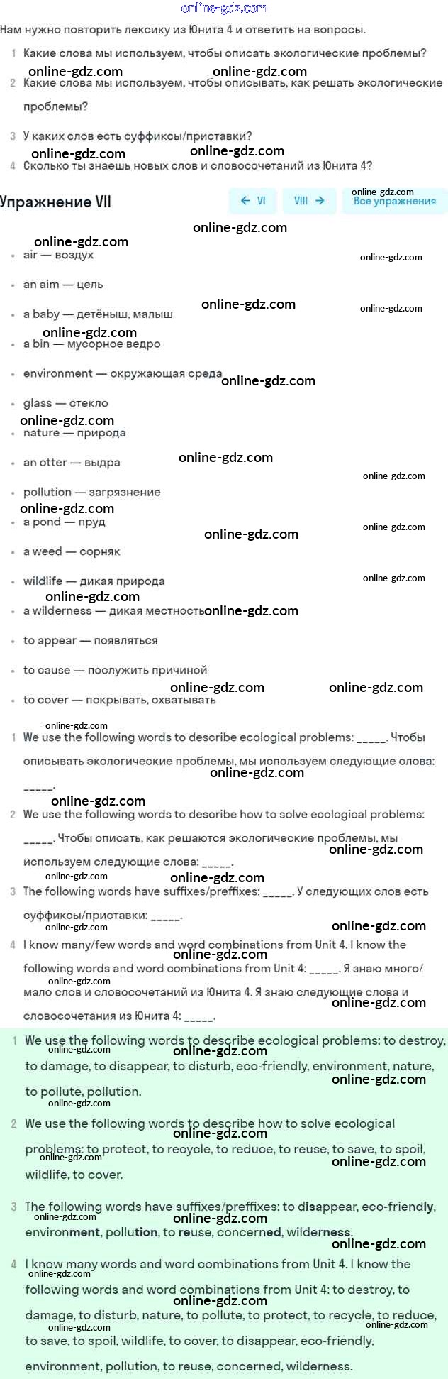 Готовые домашние задания по Английскому языку за 7 класс Учебник Кузовлев, Лапа УМК 2015 - Lesson 7 Unit 4. Are you a friend of the planet? 7