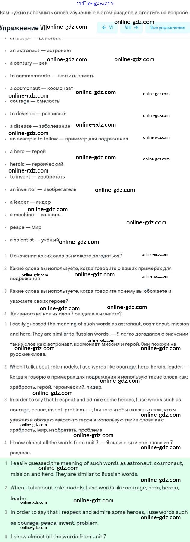 Готовые домашние задания по Английскому языку за 7 класс Учебник Кузовлев, Лапа УМК 2015 - Lesson 8 Unit 7. Do you have an example to follow? 7