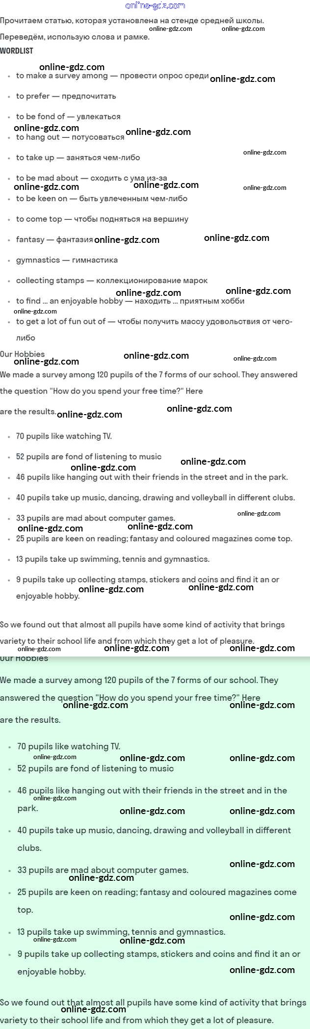Готовые домашние задания по Английскому языку за 7 класс Учебник Кузовлев, Лапа УМК 2015 - Lesson 3 Unit 8. How do you spend your free time? 4