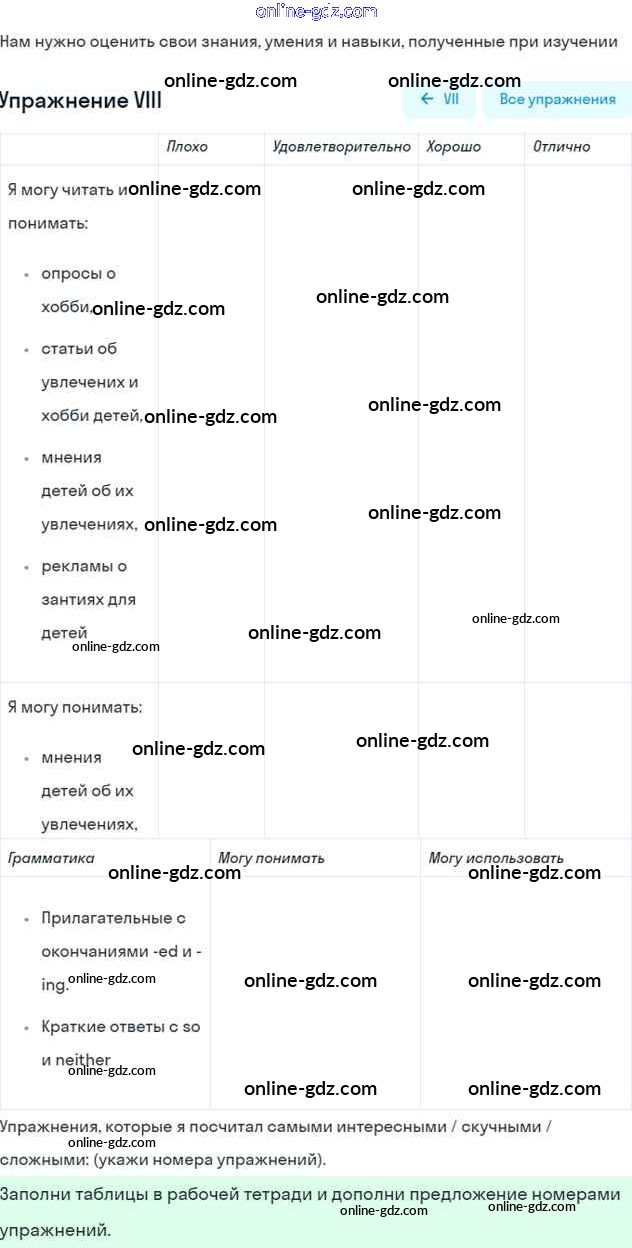 Готовые домашние задания по Английскому языку за 7 класс Учебник Кузовлев, Лапа УМК 2015 - Lesson 7 Unit 8. How do you spend your free time? 8