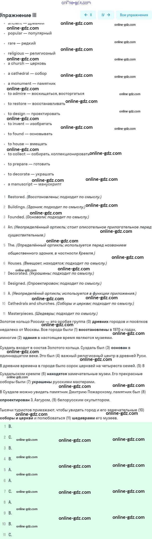 Готовые домашние задания по Английскому языку за 7 класс Учебник Кузовлев, Лапа УМК 2015 - Lesson 8 Unit 9. What are the most famous sights of your counry? 3