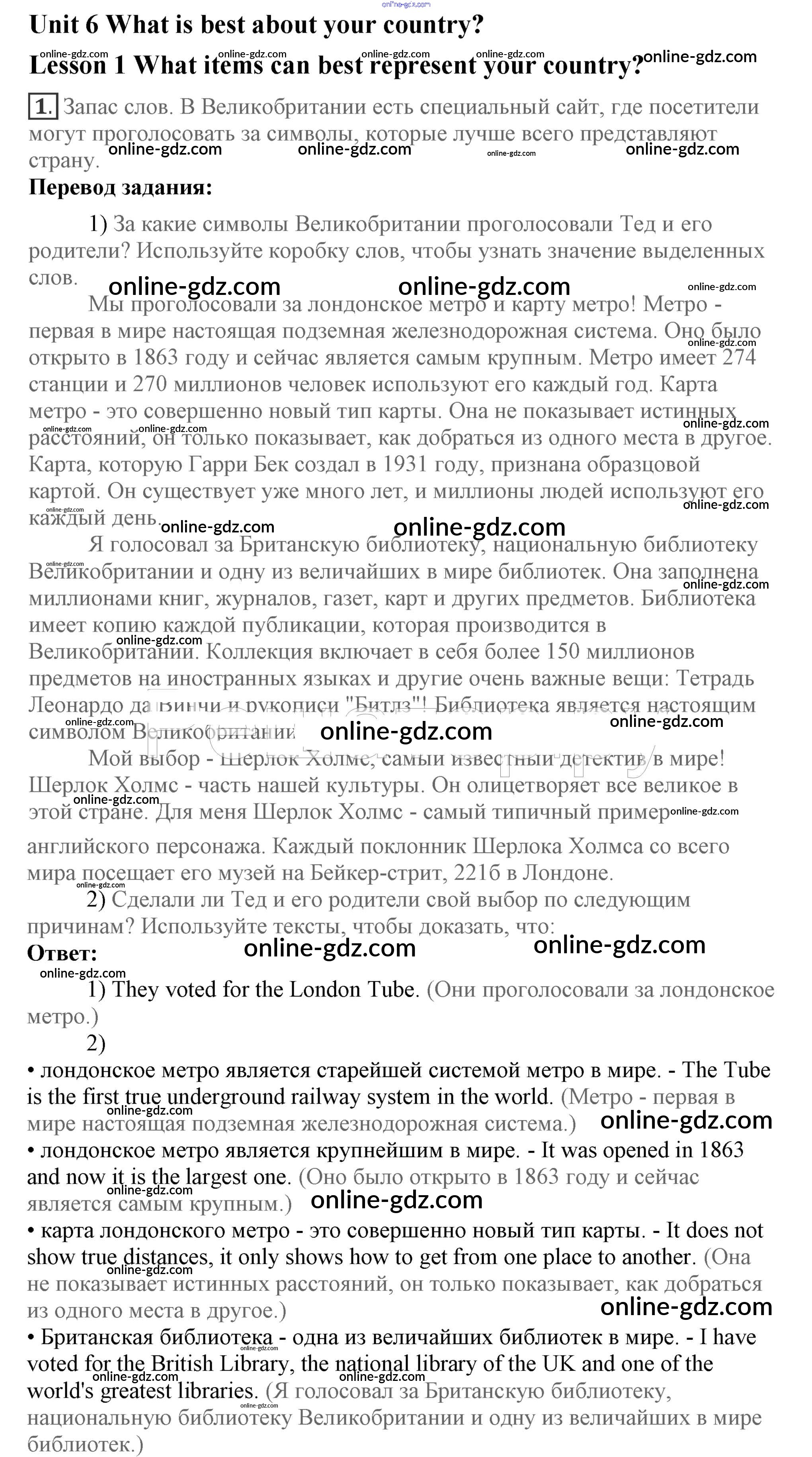 Готовые домашние задания по Английскому языку за 7 класс Учебник Кузовлев, Лапа УМК 2015 - Lesson 1 Unit 6. What is best about your country? 1