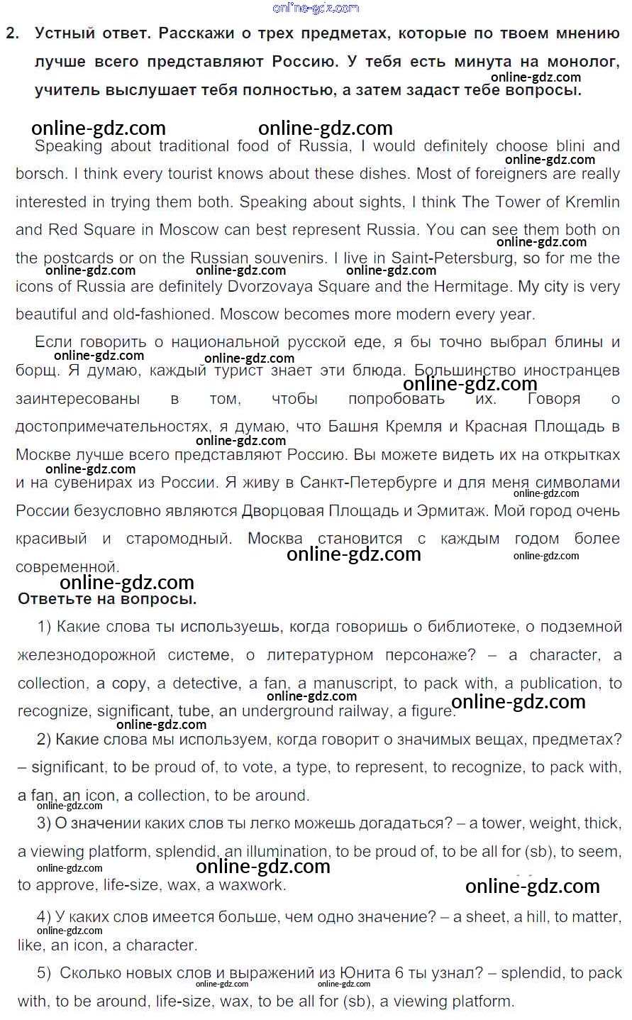 Готовые домашние задания по Английскому языку за 7 класс Учебник Кузовлев, Лапа УМК 2015 - Lesson 7 Unit 6. What is best about your country? 2
