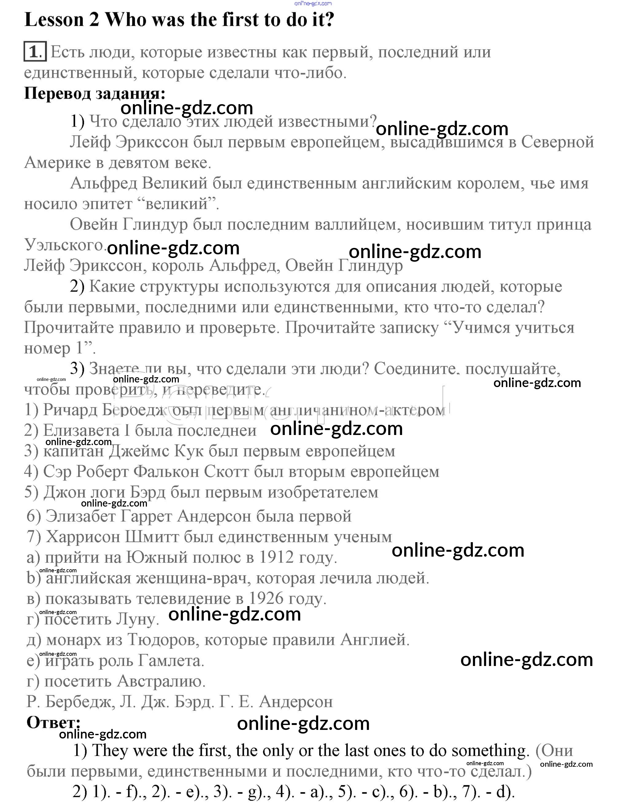 Готовые домашние задания по Английскому языку за 7 класс Учебник Кузовлев, Лапа УМК 2015 - Lesson 2 Unit 7. Do you have an example to follow? 1