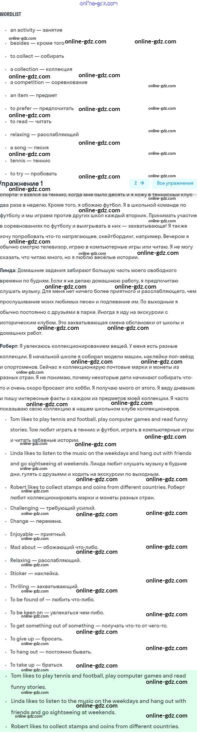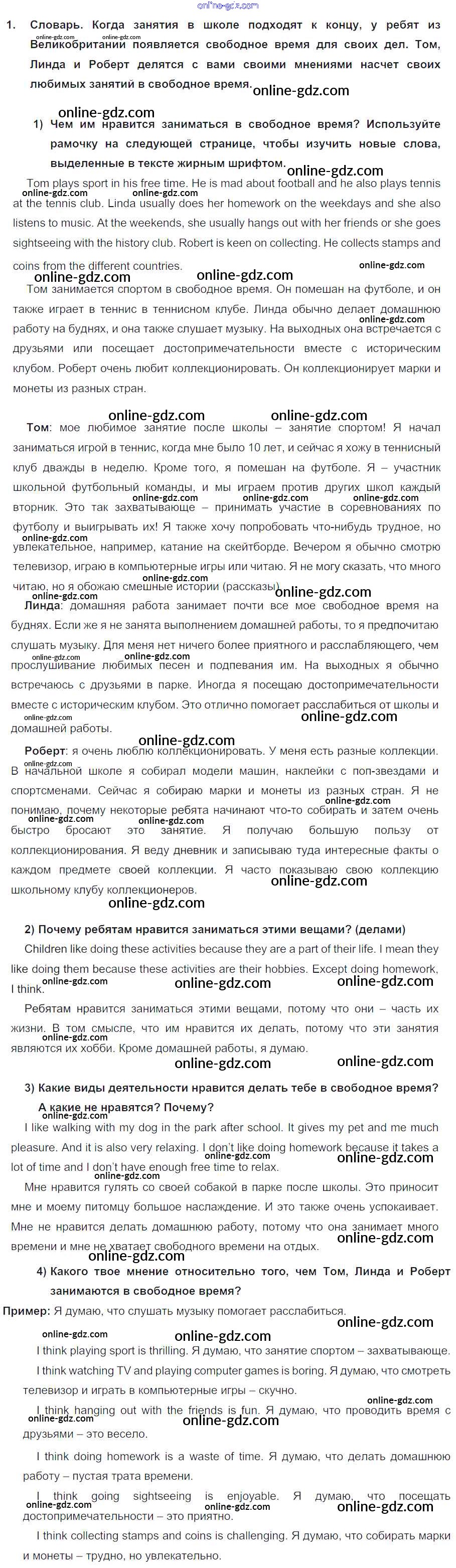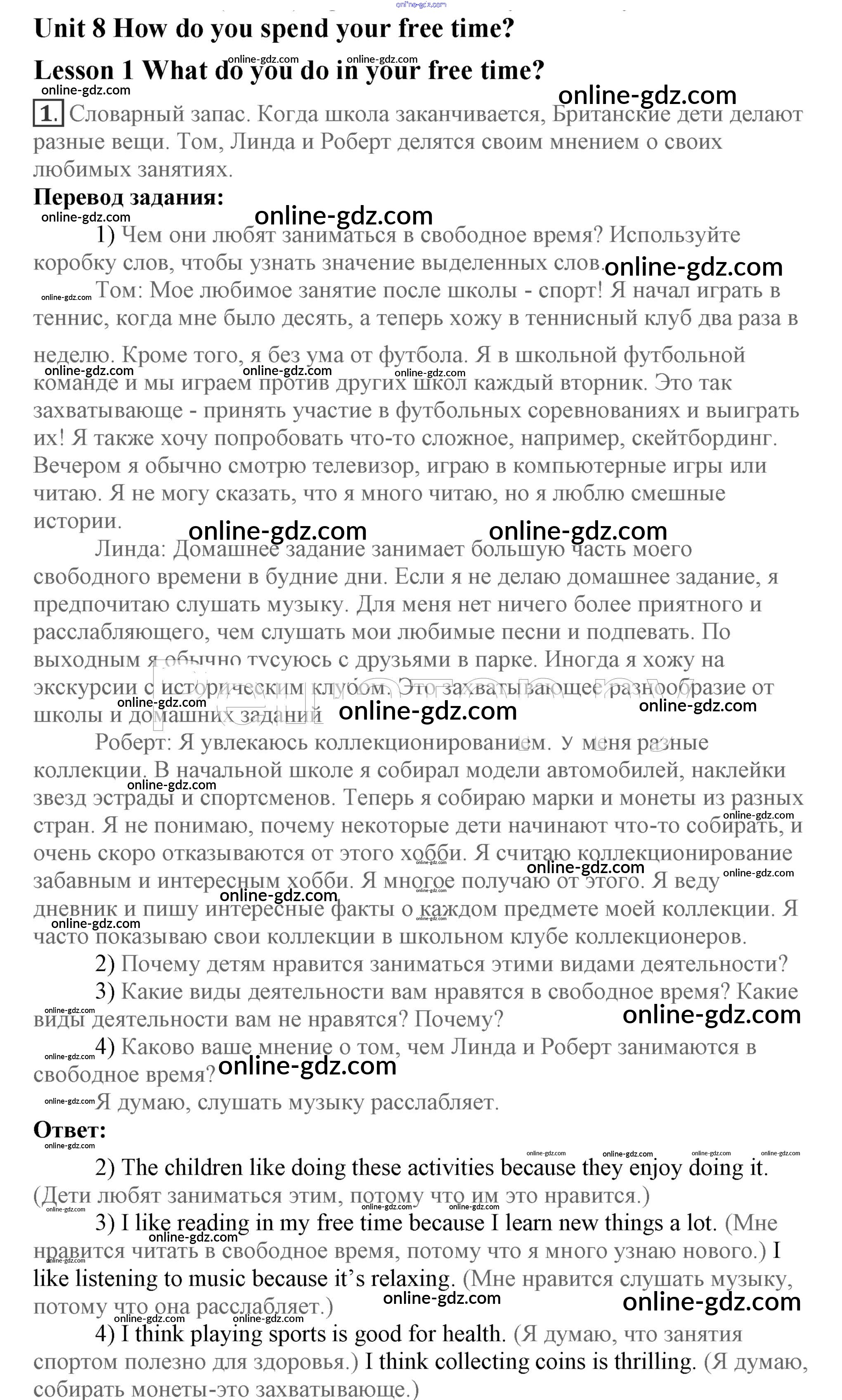Готовые домашние задания по Английскому языку за 7 класс Учебник Кузовлев, Лапа УМК 2015 - Lesson 1 Unit 8. How do you spend your free time? 1