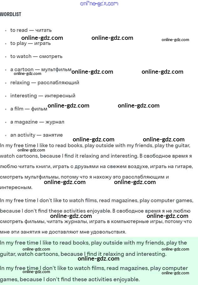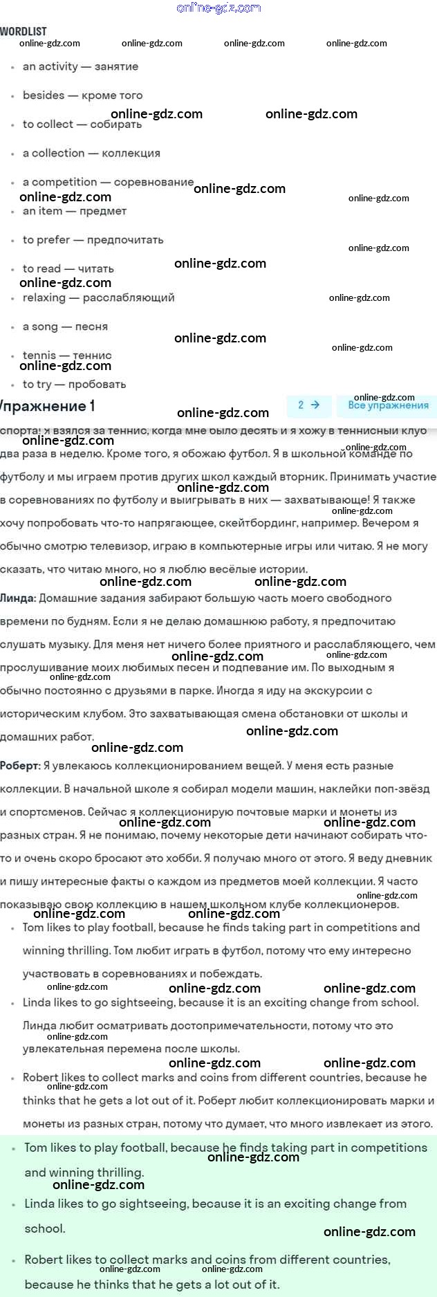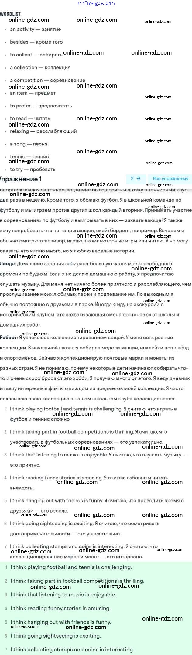 Готовые домашние задания по Английскому языку за 7 класс Учебник Кузовлев, Лапа УМК 2015 - Lesson 1 Unit 8. How do you spend your free time? 1