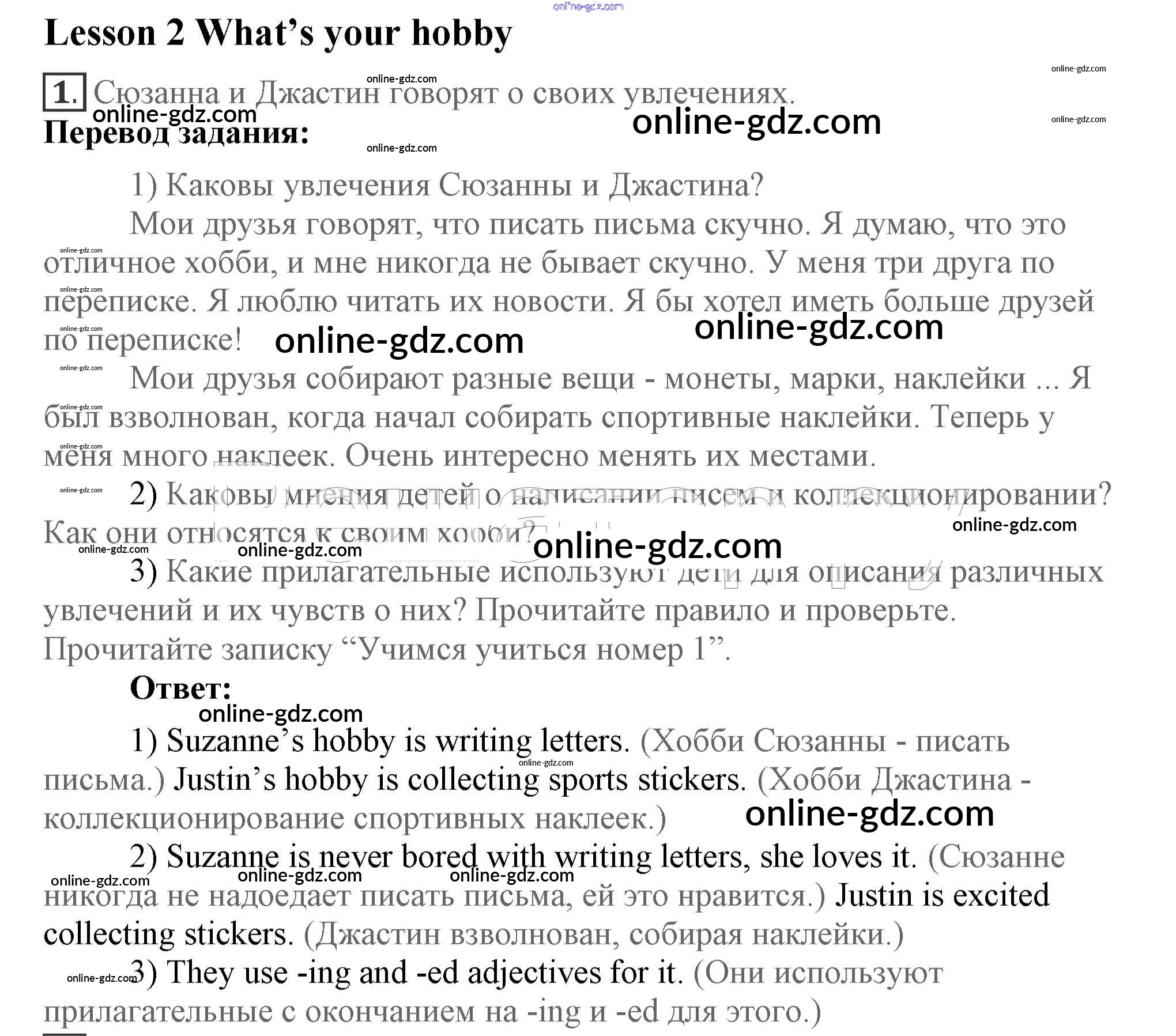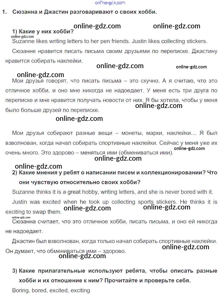 Готовые домашние задания по Английскому языку за 7 класс Учебник Кузовлев, Лапа УМК 2015 - Lesson 2 Unit 8. How do you spend your free time? 1