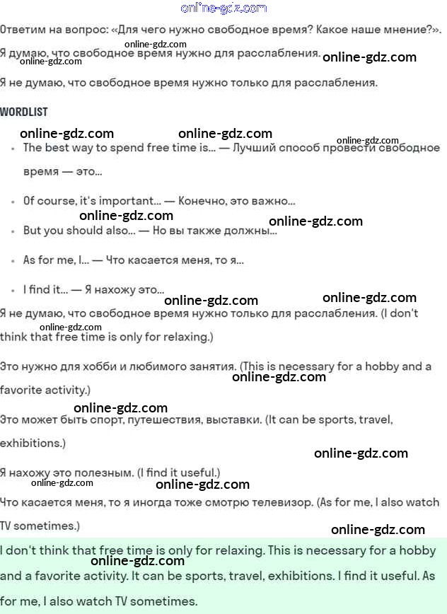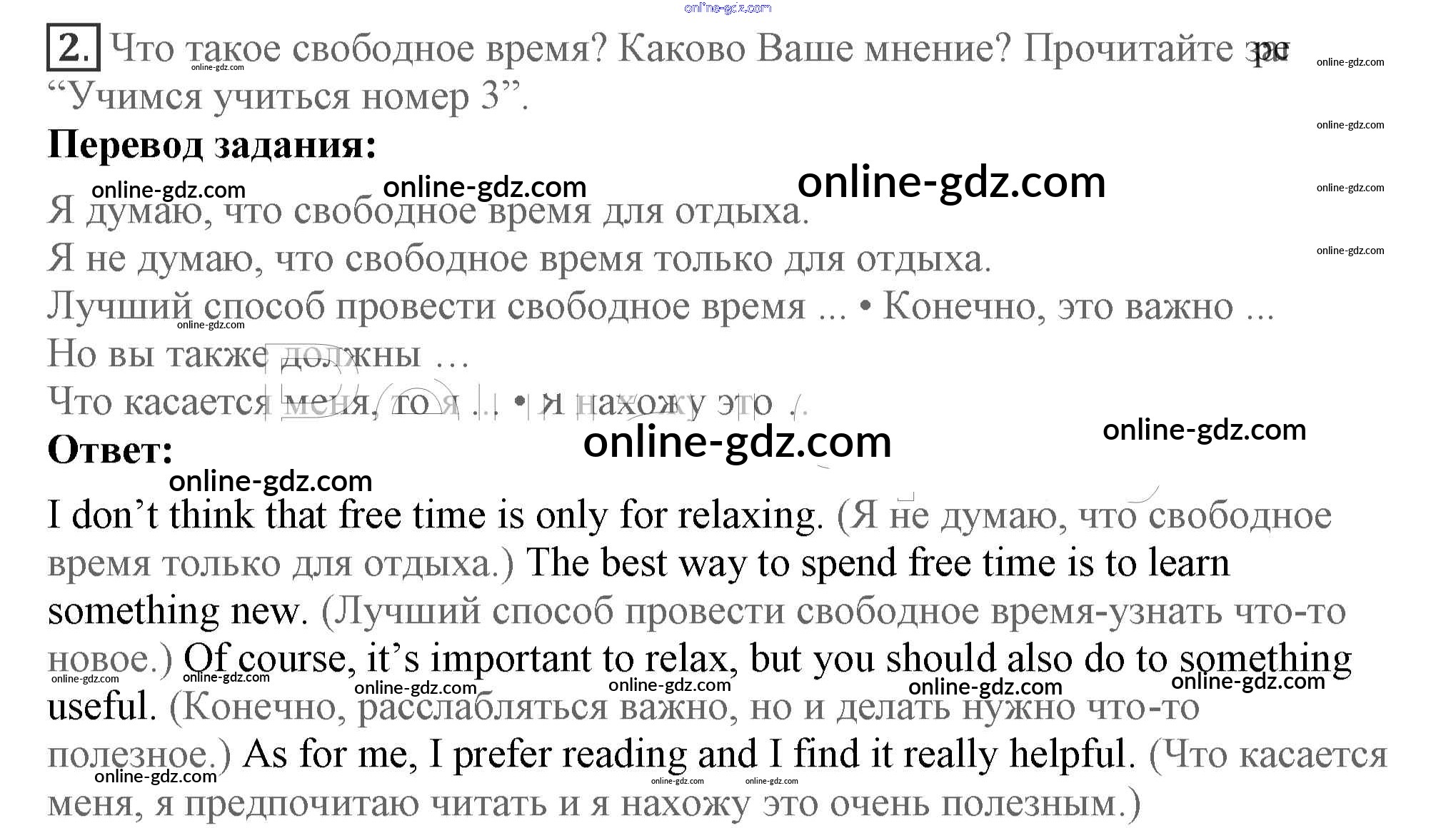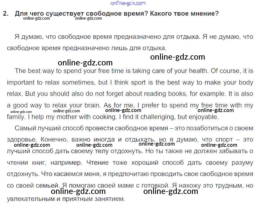 Готовые домашние задания по Английскому языку за 7 класс Учебник Кузовлев, Лапа УМК 2015 - Lesson 3 Unit 8. How do you spend your free time? 2