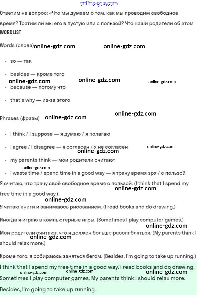 Готовые домашние задания по Английскому языку за 7 класс Учебник Кузовлев, Лапа УМК 2015 - Lesson 3 Unit 8. How do you spend your free time? 3