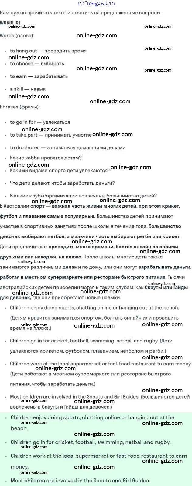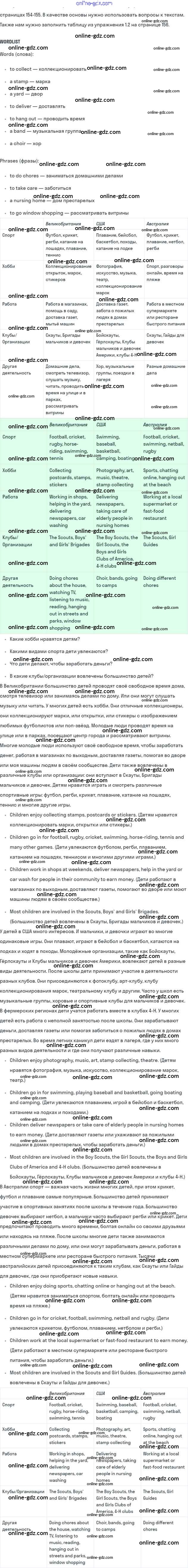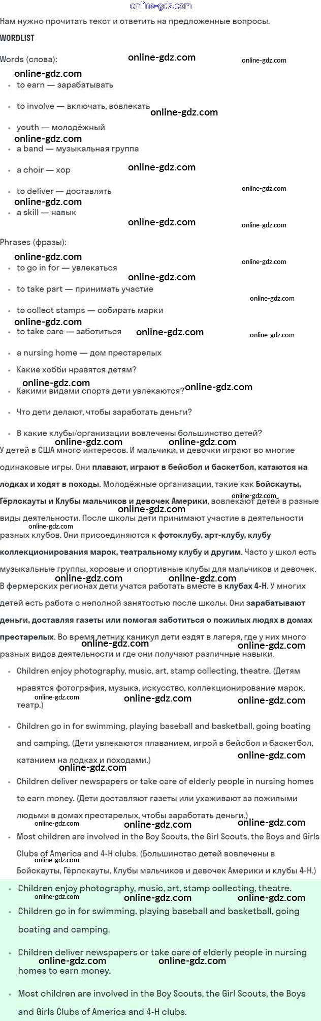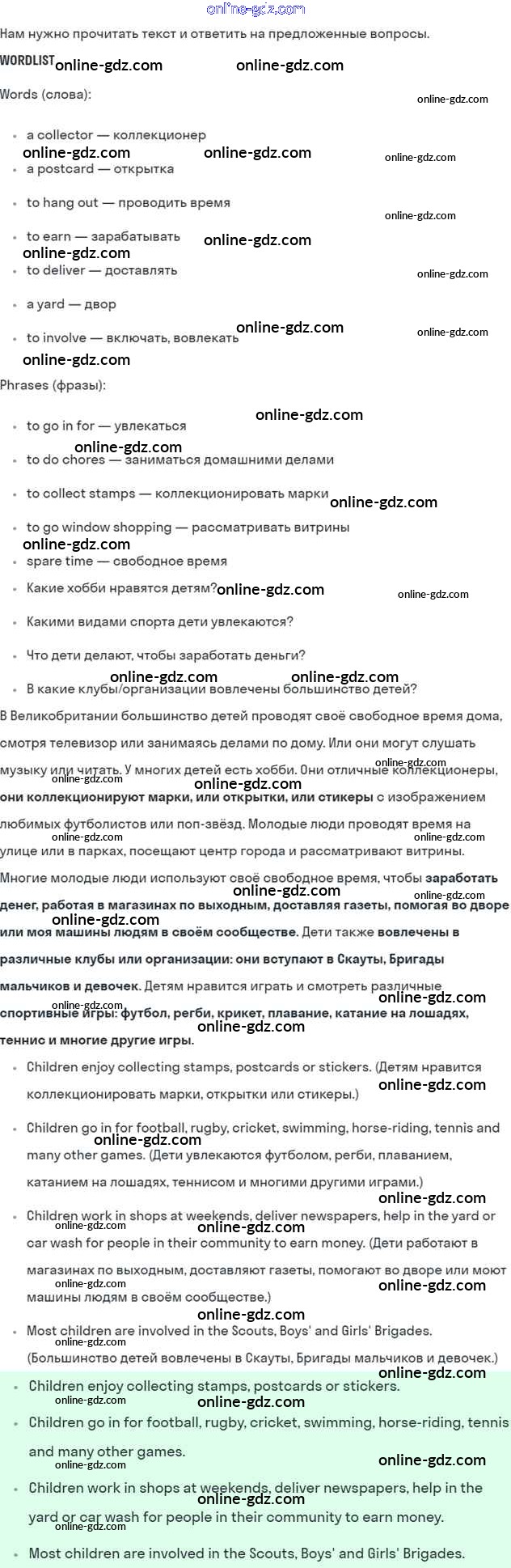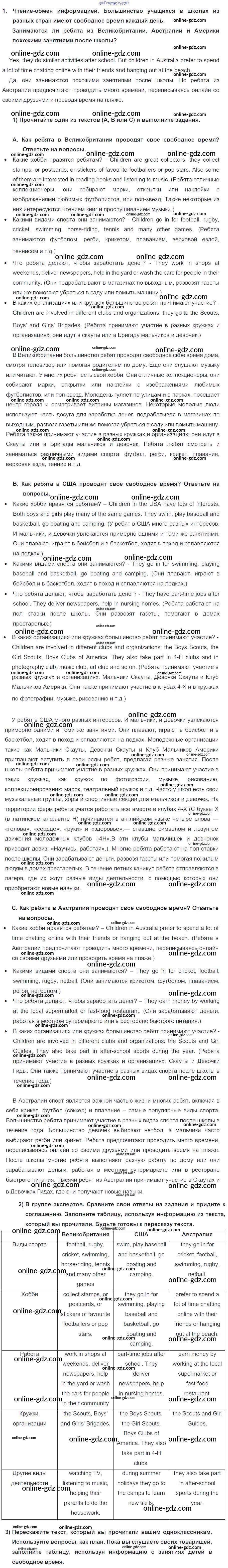 Готовые домашние задания по Английскому языку за 7 класс Учебник Кузовлев, Лапа УМК 2015 - Lesson 5 Unit 8. How do you spend your free time? 1