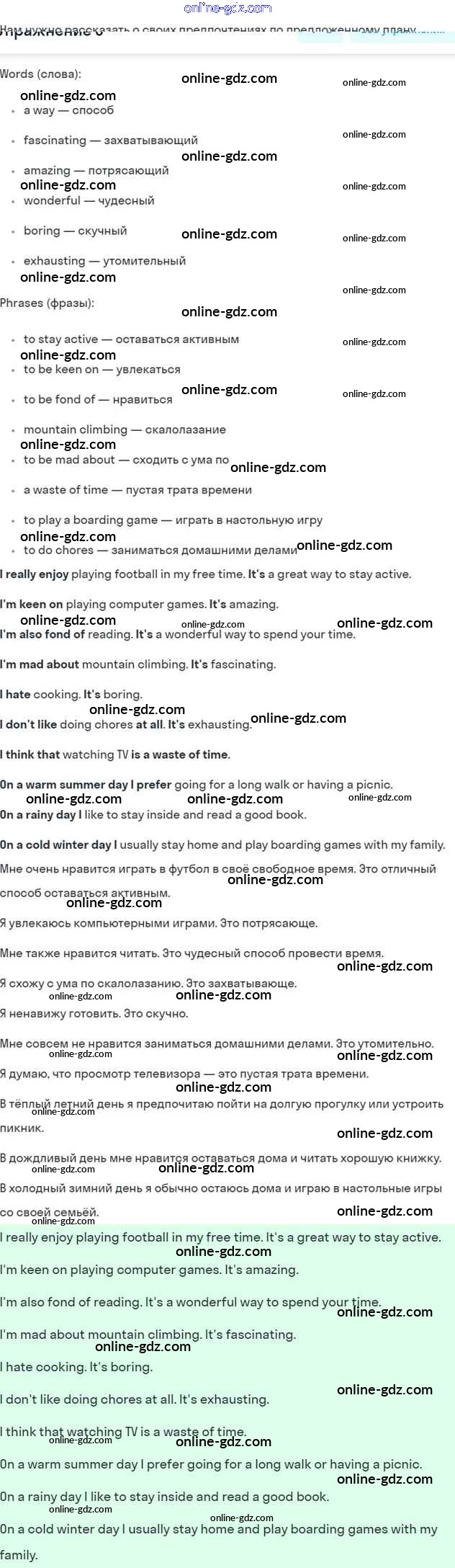 Готовые домашние задания по Английскому языку за 7 класс Учебник Кузовлев, Лапа УМК 2015 - Lesson 5 Unit 8. How do you spend your free time? 3