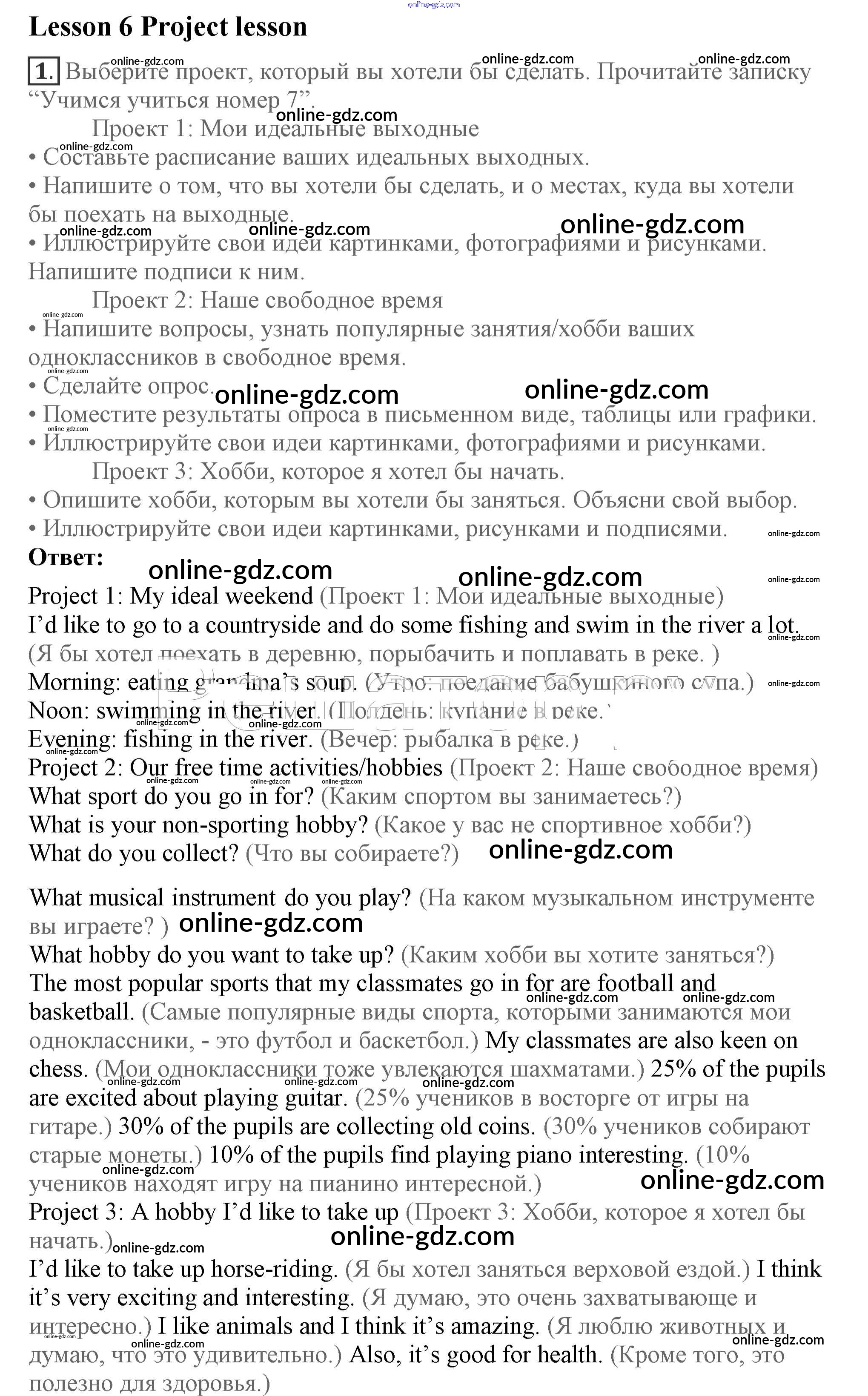 Готовые домашние задания по Английскому языку за 7 класс Учебник Кузовлев, Лапа УМК 2015 - Lesson 6 Unit 8. How do you spend your free time? 1