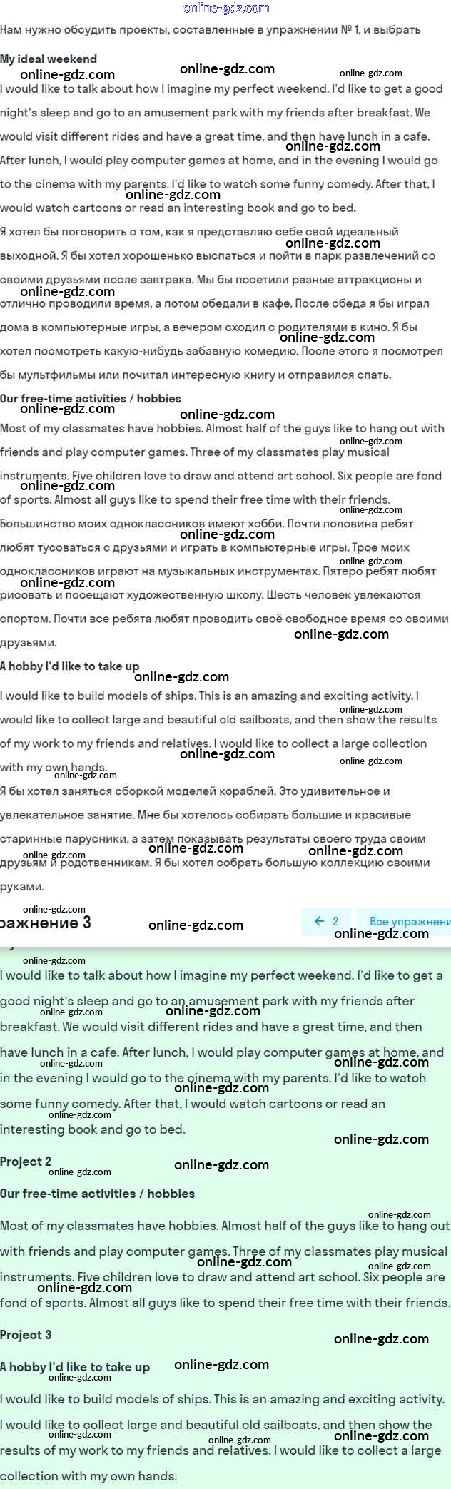 Готовые домашние задания по Английскому языку за 7 класс Учебник Кузовлев, Лапа УМК 2015 - Lesson 6 Unit 8. How do you spend your free time? 3