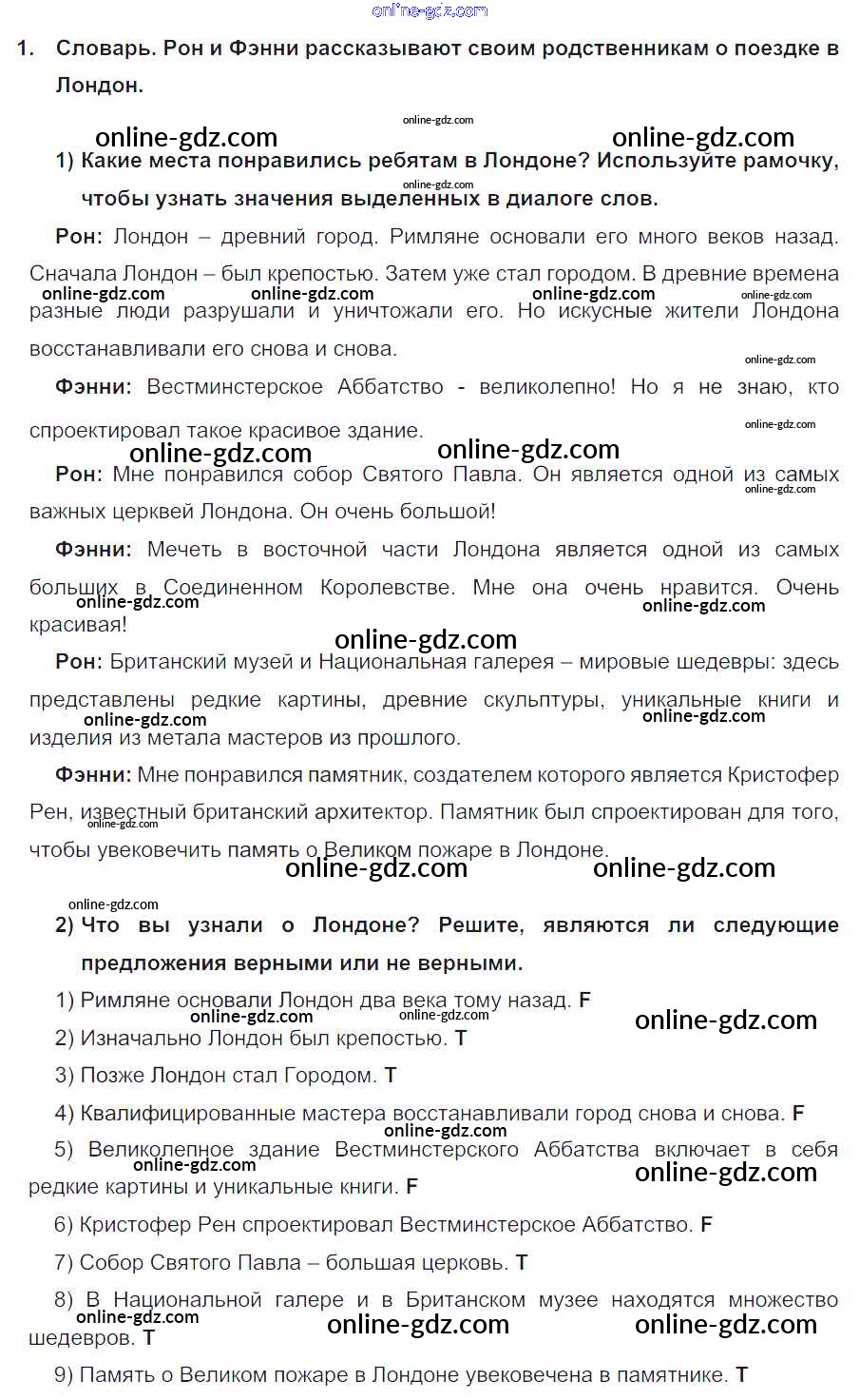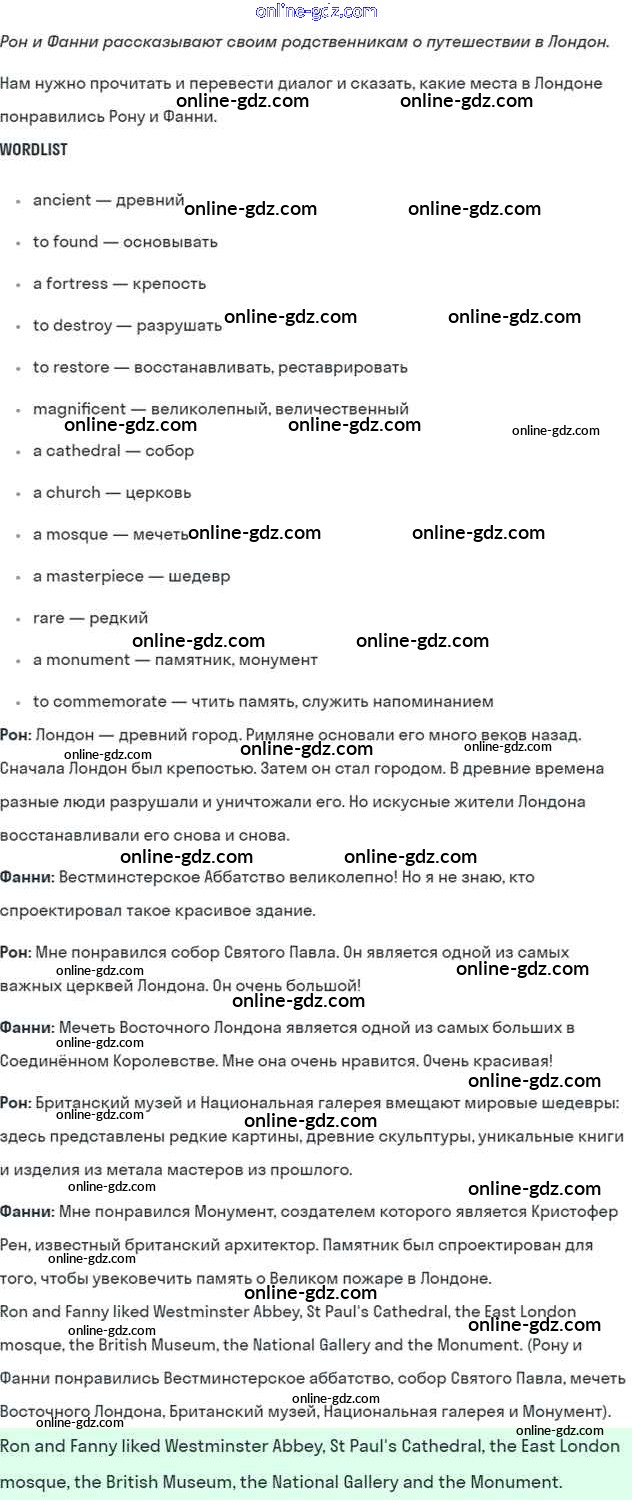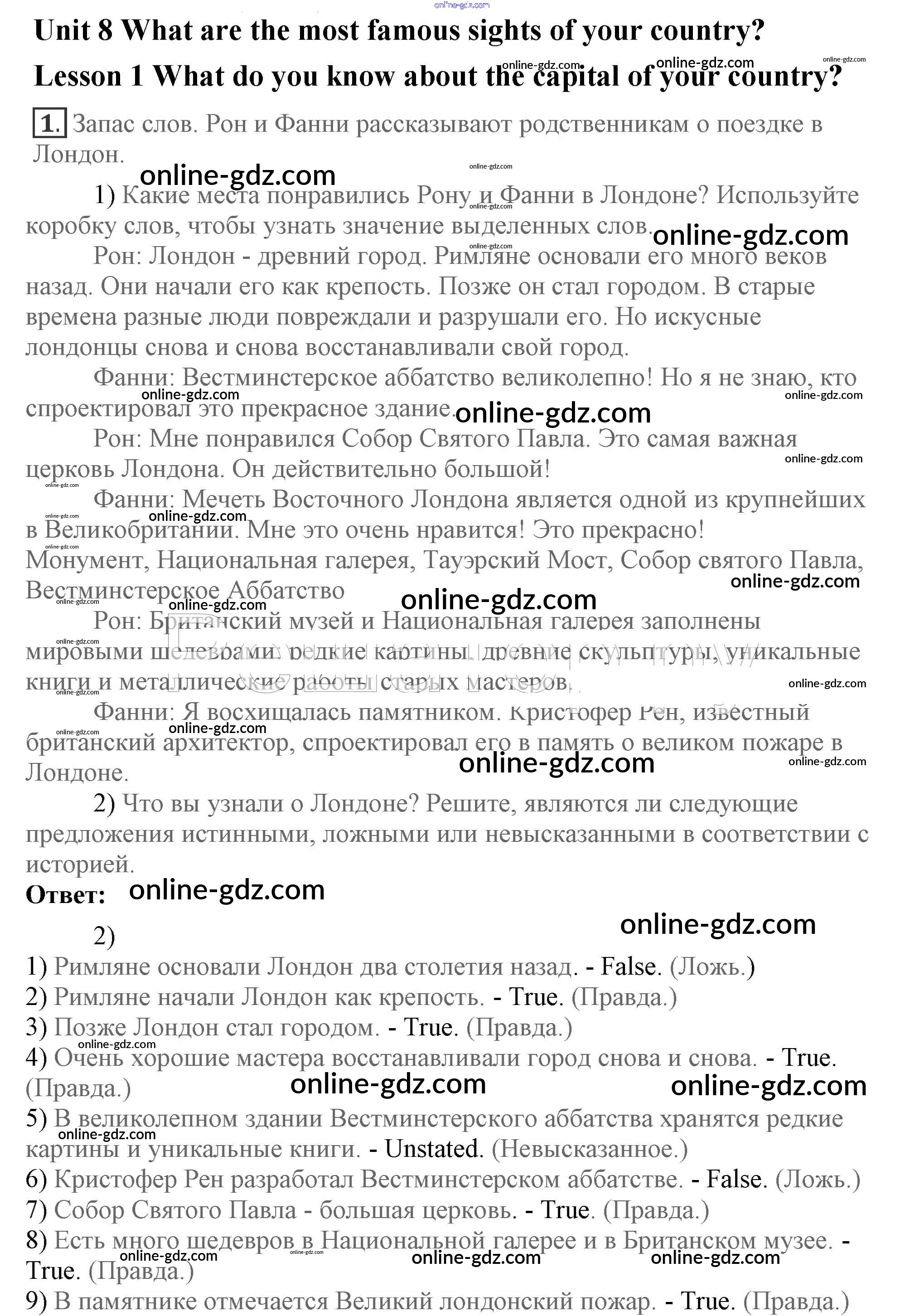 Готовые домашние задания по Английскому языку за 7 класс Учебник Кузовлев, Лапа УМК 2015 - Lesson 1 Unit 9. What are the most famous sights of your counry? 1
