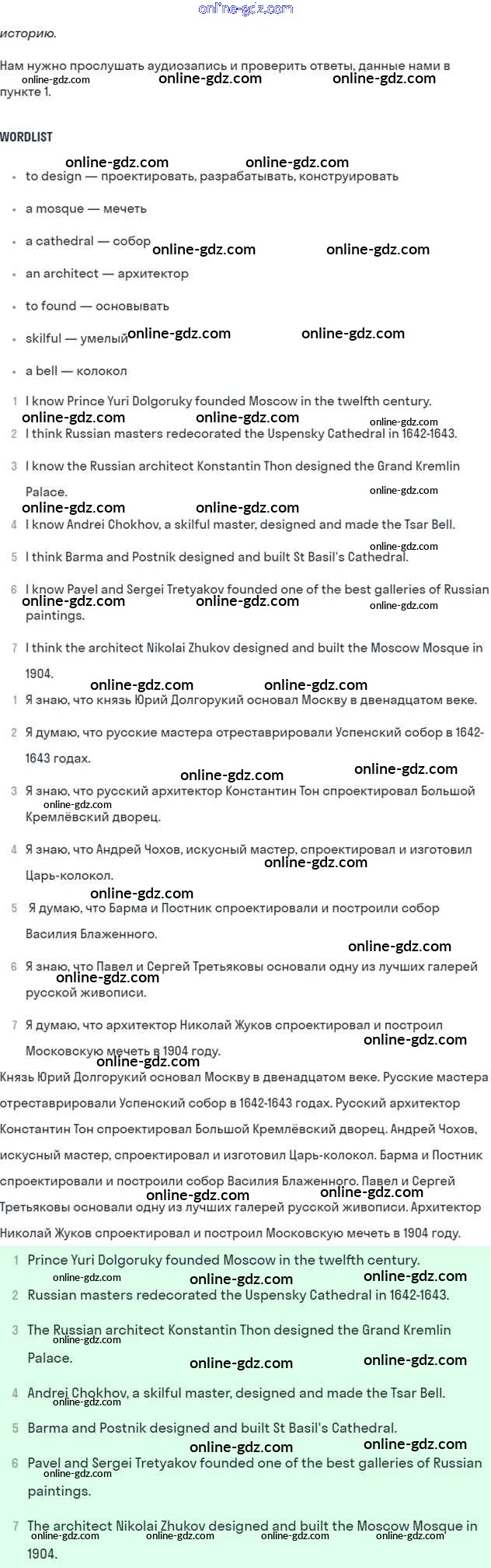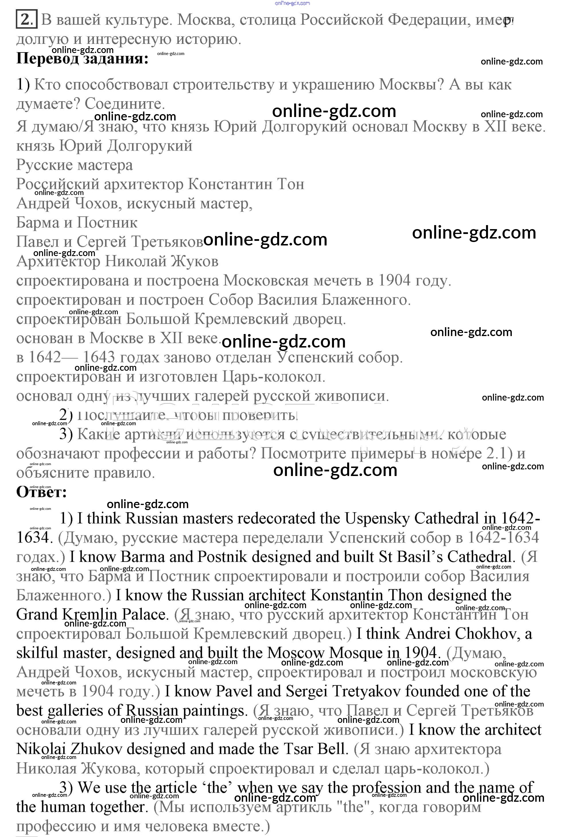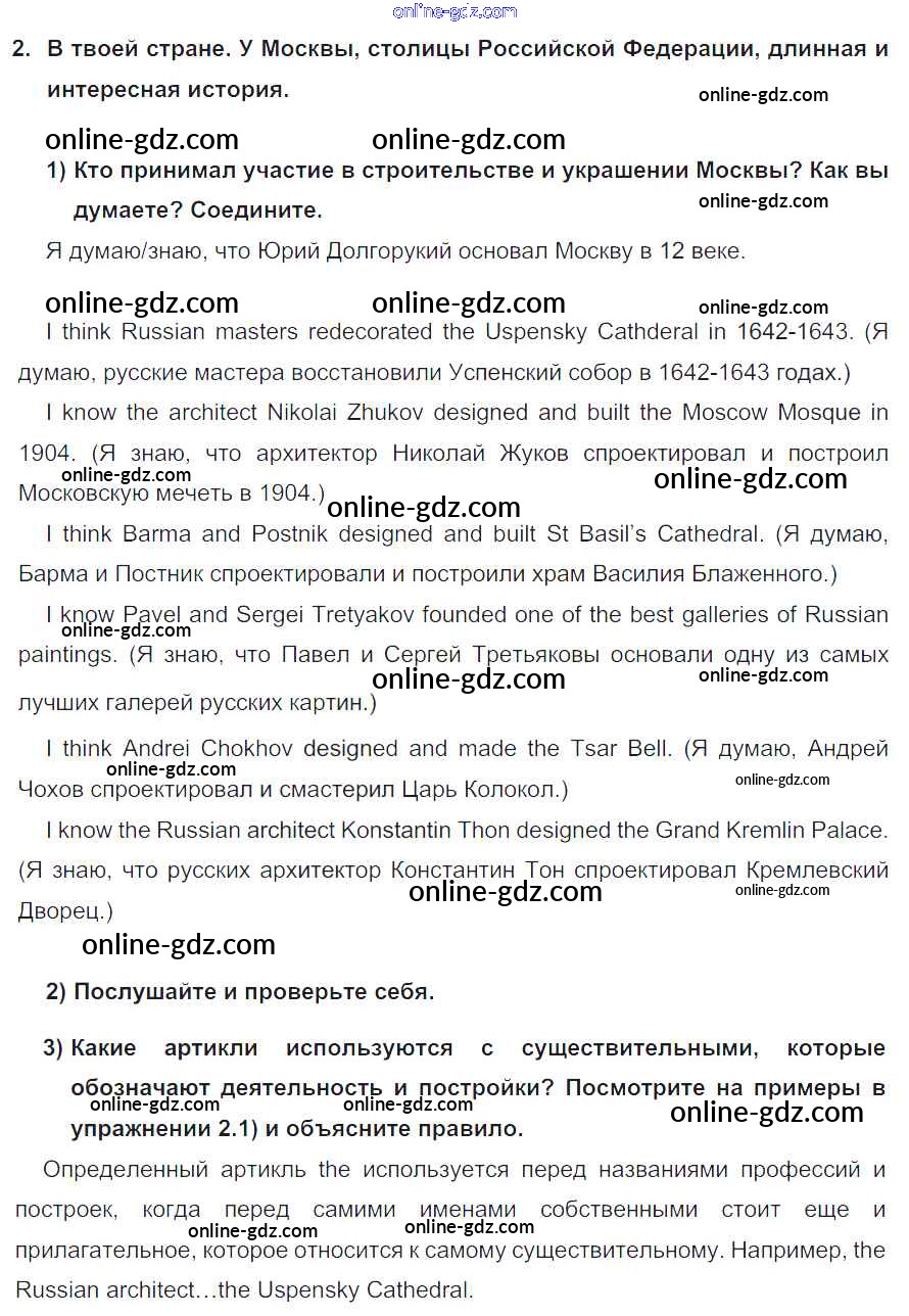 Готовые домашние задания по Английскому языку за 7 класс Учебник Кузовлев, Лапа УМК 2015 - Lesson 1 Unit 9. What are the most famous sights of your counry? 2