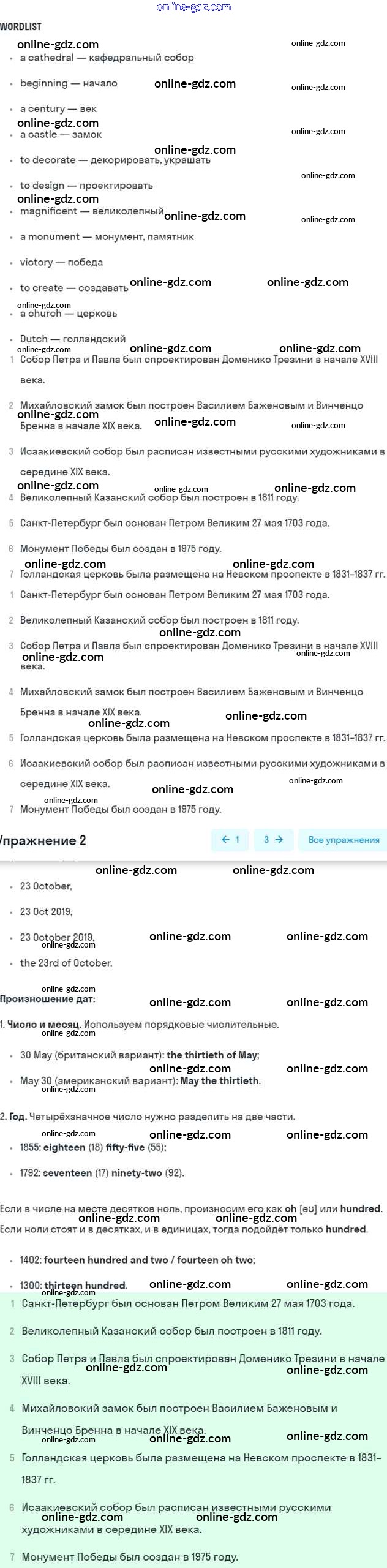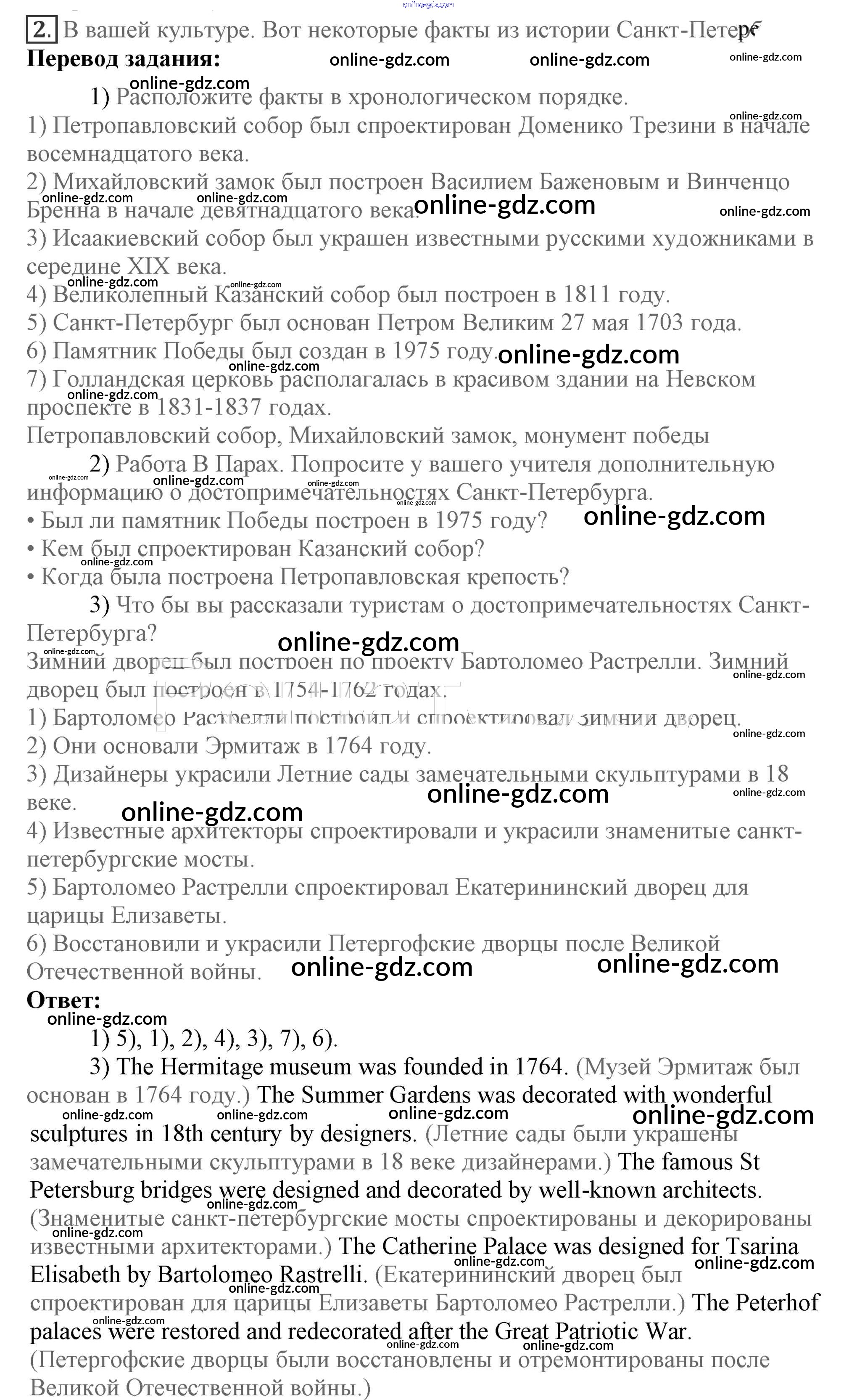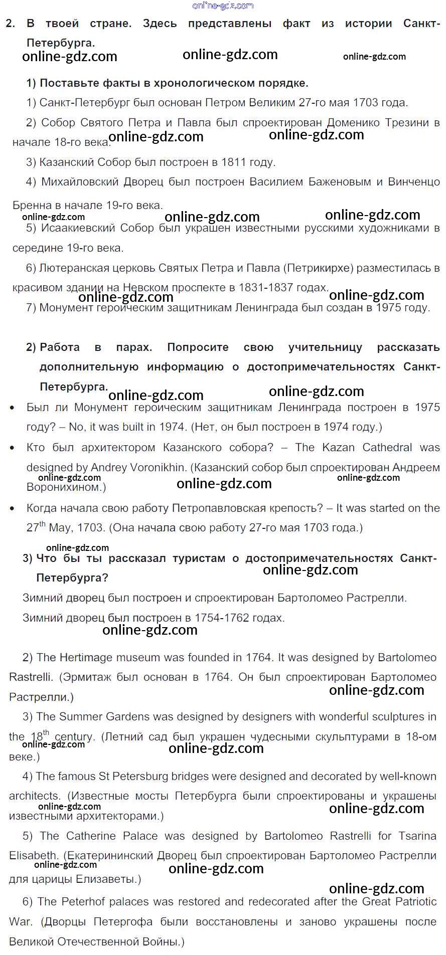 Готовые домашние задания по Английскому языку за 7 класс Учебник Кузовлев, Лапа УМК 2015 - Lesson 2 Unit 9. What are the most famous sights of your counry? 2