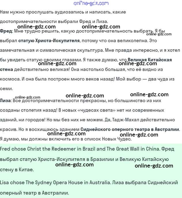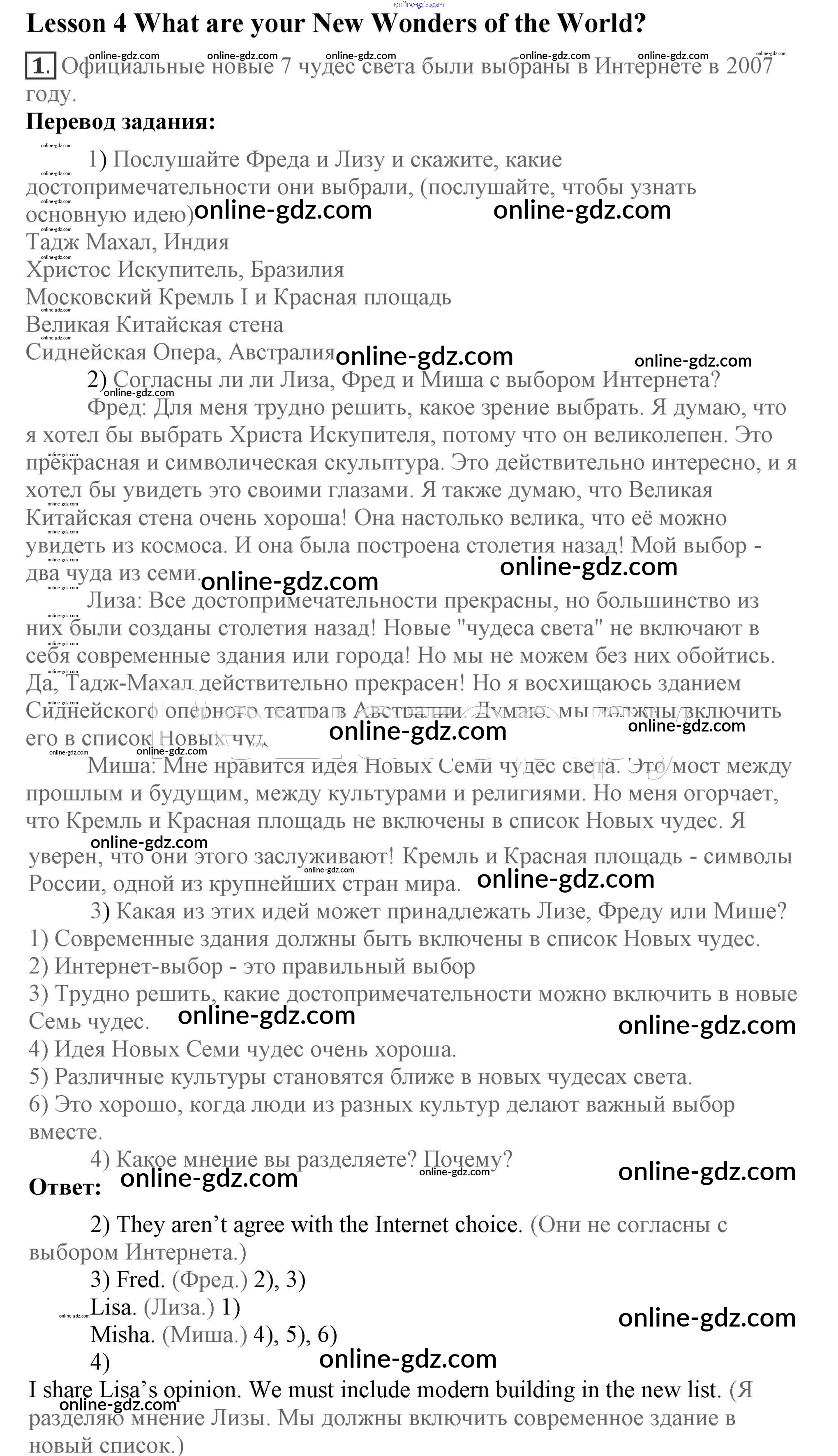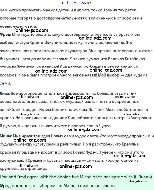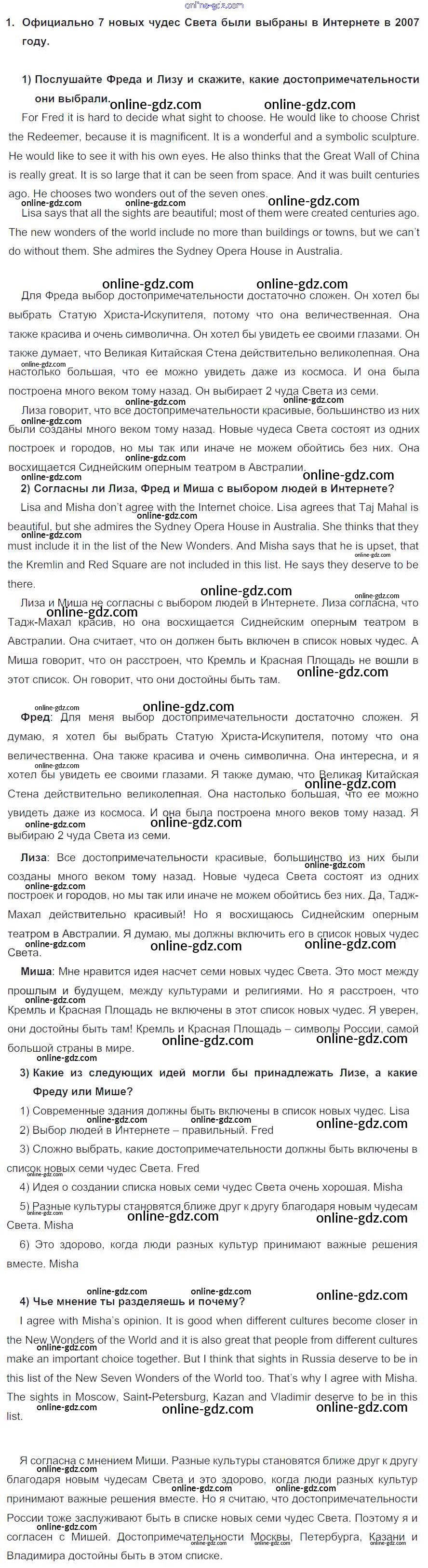 Готовые домашние задания по Английскому языку за 7 класс Учебник Кузовлев, Лапа УМК 2015 - Lesson 4 Unit 9. What are the most famous sights of your counry? 1