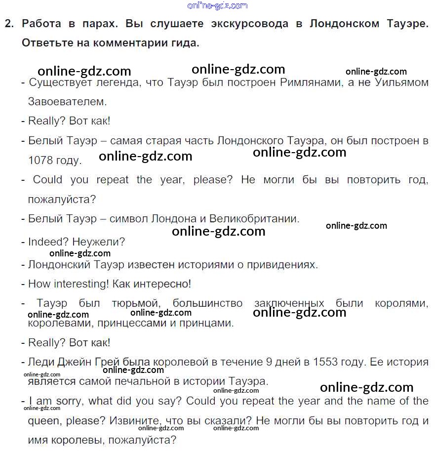 Готовые домашние задания по Английскому языку за 7 класс Учебник Кузовлев, Лапа УМК 2015 - Lesson 5 Unit 9. What are the most famous sights of your counry? 2