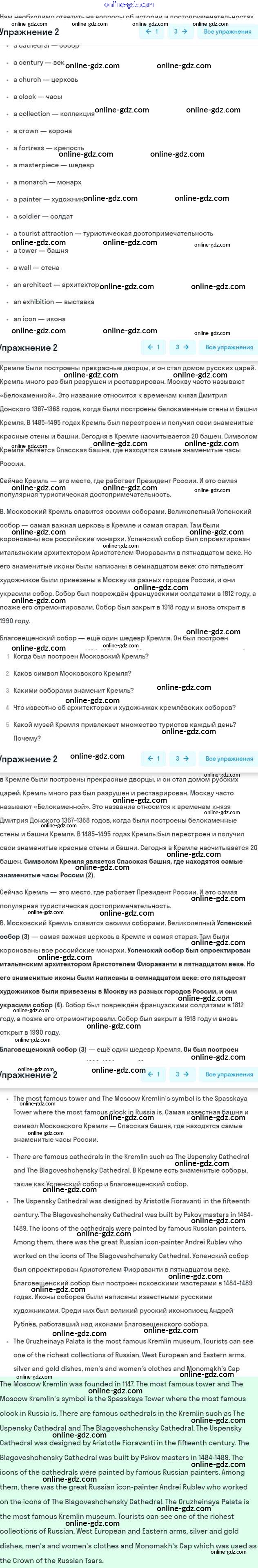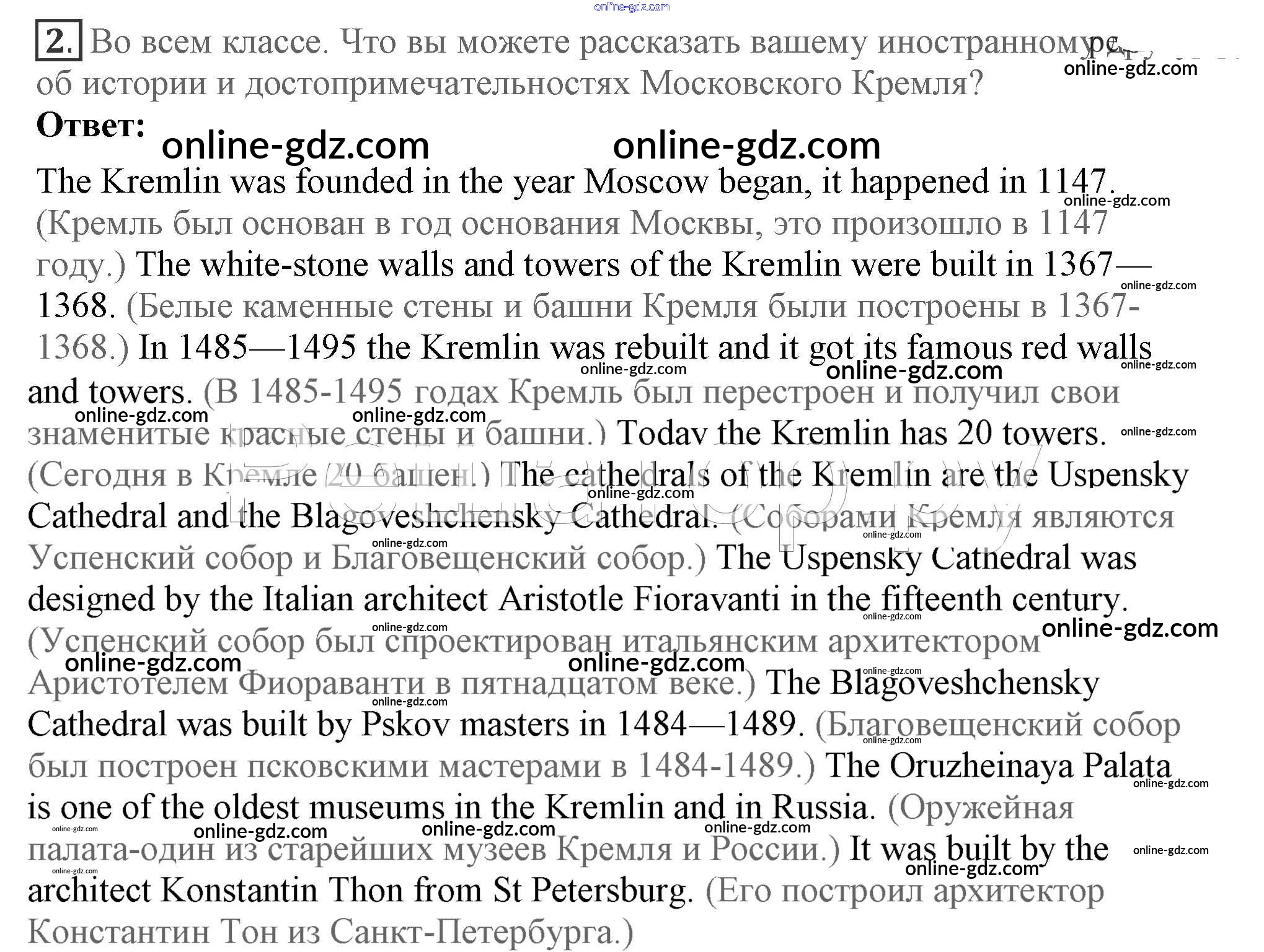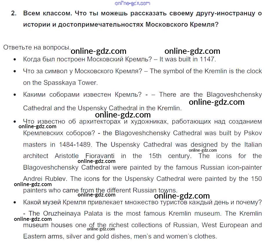 Готовые домашние задания по Английскому языку за 7 класс Учебник Кузовлев, Лапа УМК 2015 - Lesson 6 Unit 9. What are the most famous sights of your counry? 2