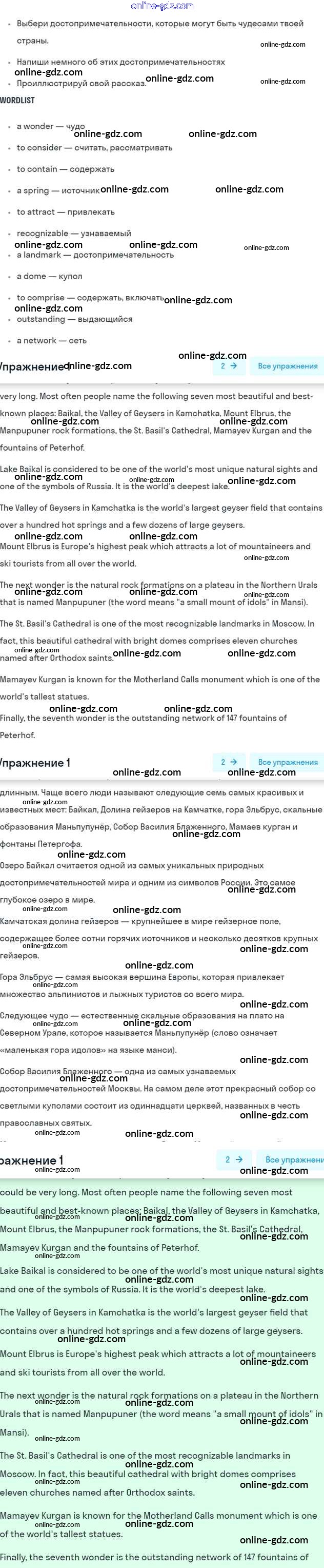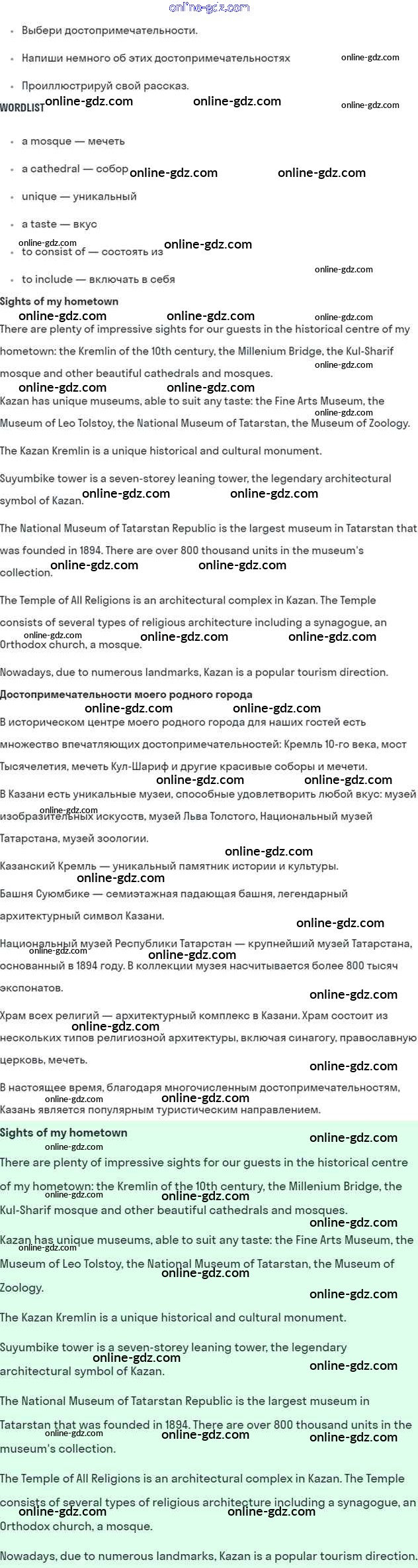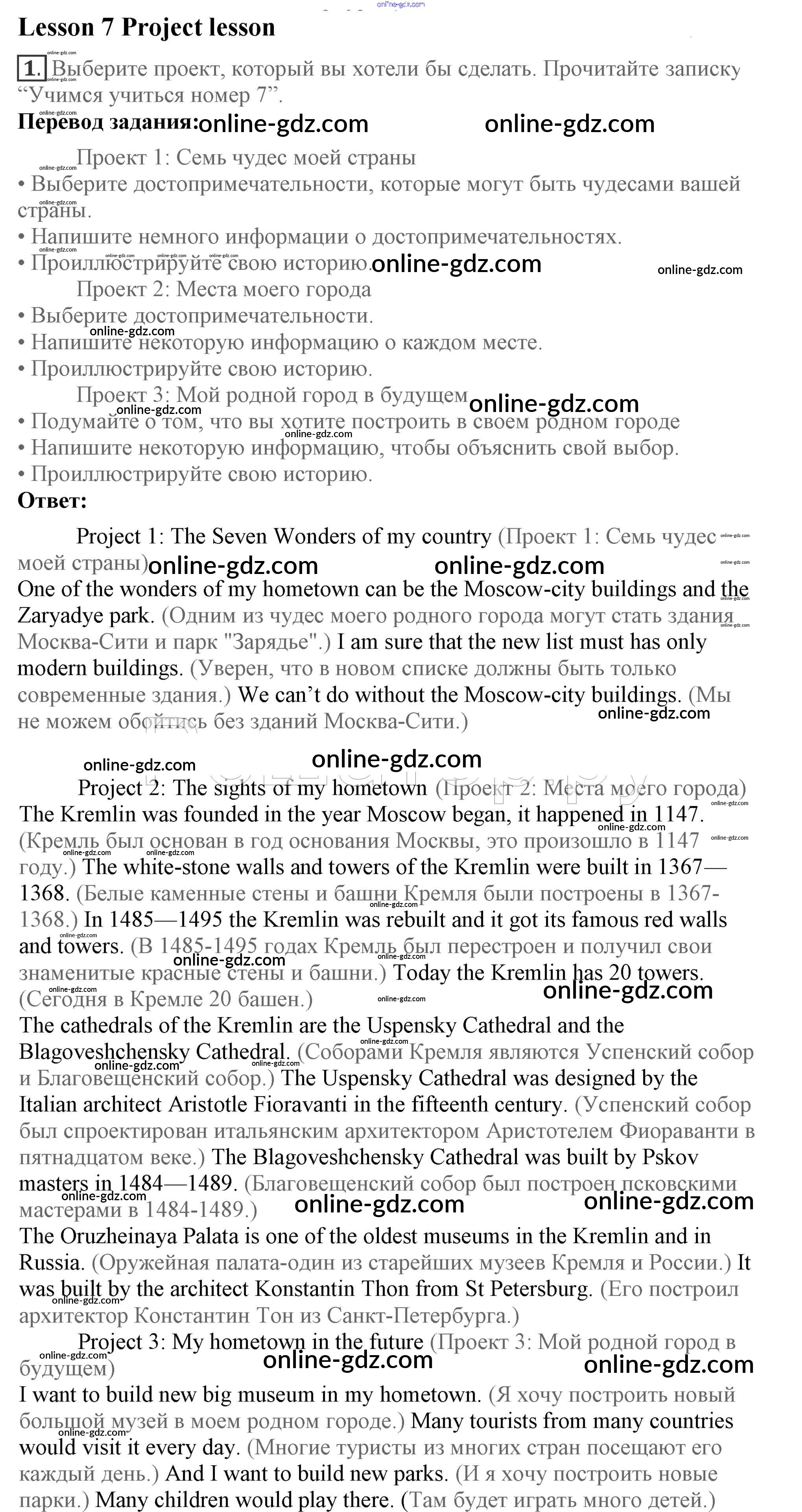 Готовые домашние задания по Английскому языку за 7 класс Учебник Кузовлев, Лапа УМК 2015 - Lesson 7 Unit 9. What are the most famous sights of your counry? 1