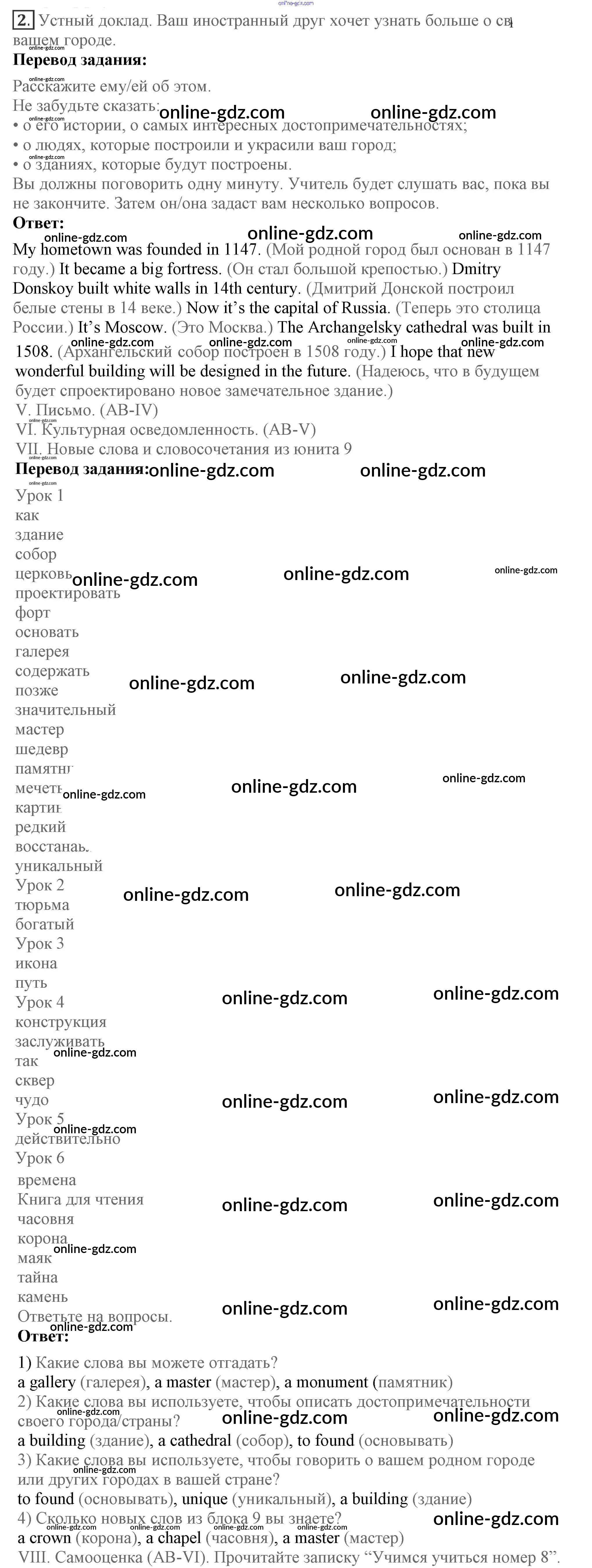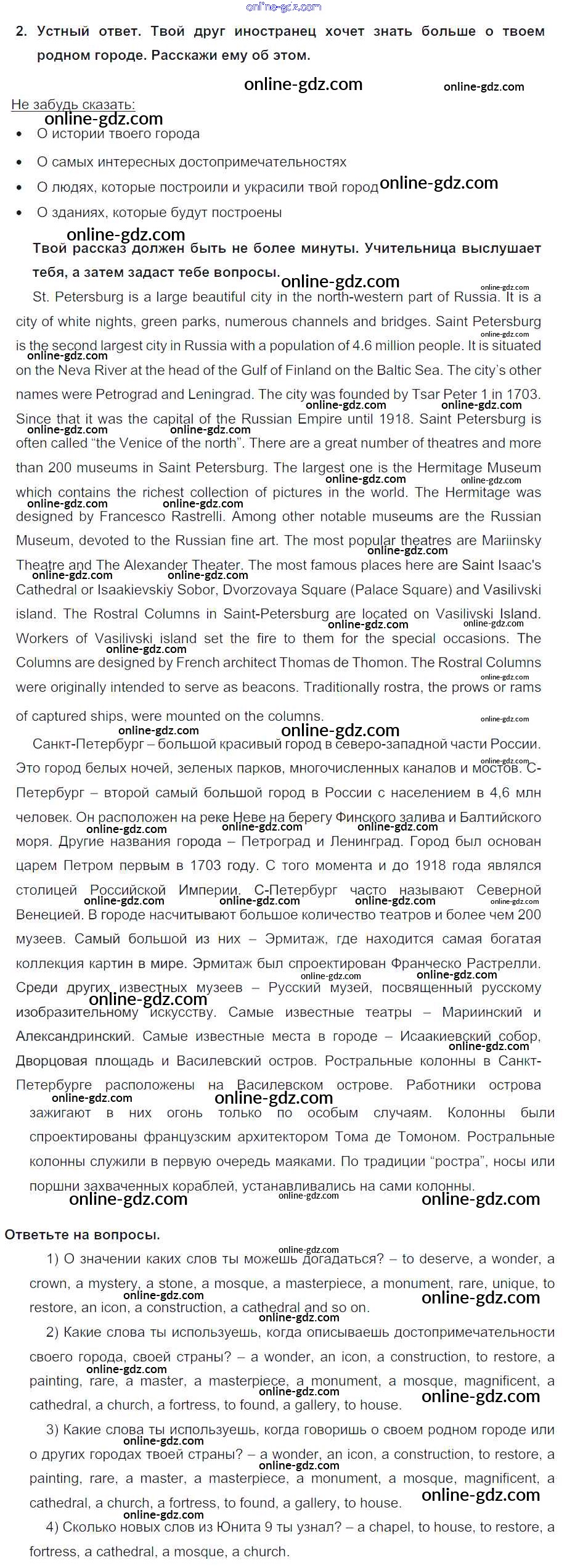 Готовые домашние задания по Английскому языку за 7 класс Учебник Кузовлев, Лапа УМК 2015 - Lesson 8 Unit 9. What are the most famous sights of your counry? 2