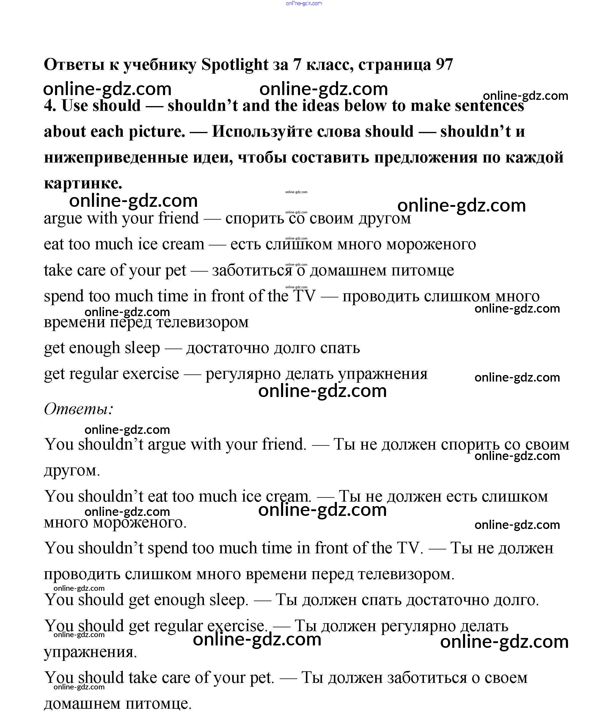 Готовые домашние задания по Английскому языку за 7 класс Учебник Ваулина, Дули Spotlight 2019 - Часть 10a Модуль 10 4