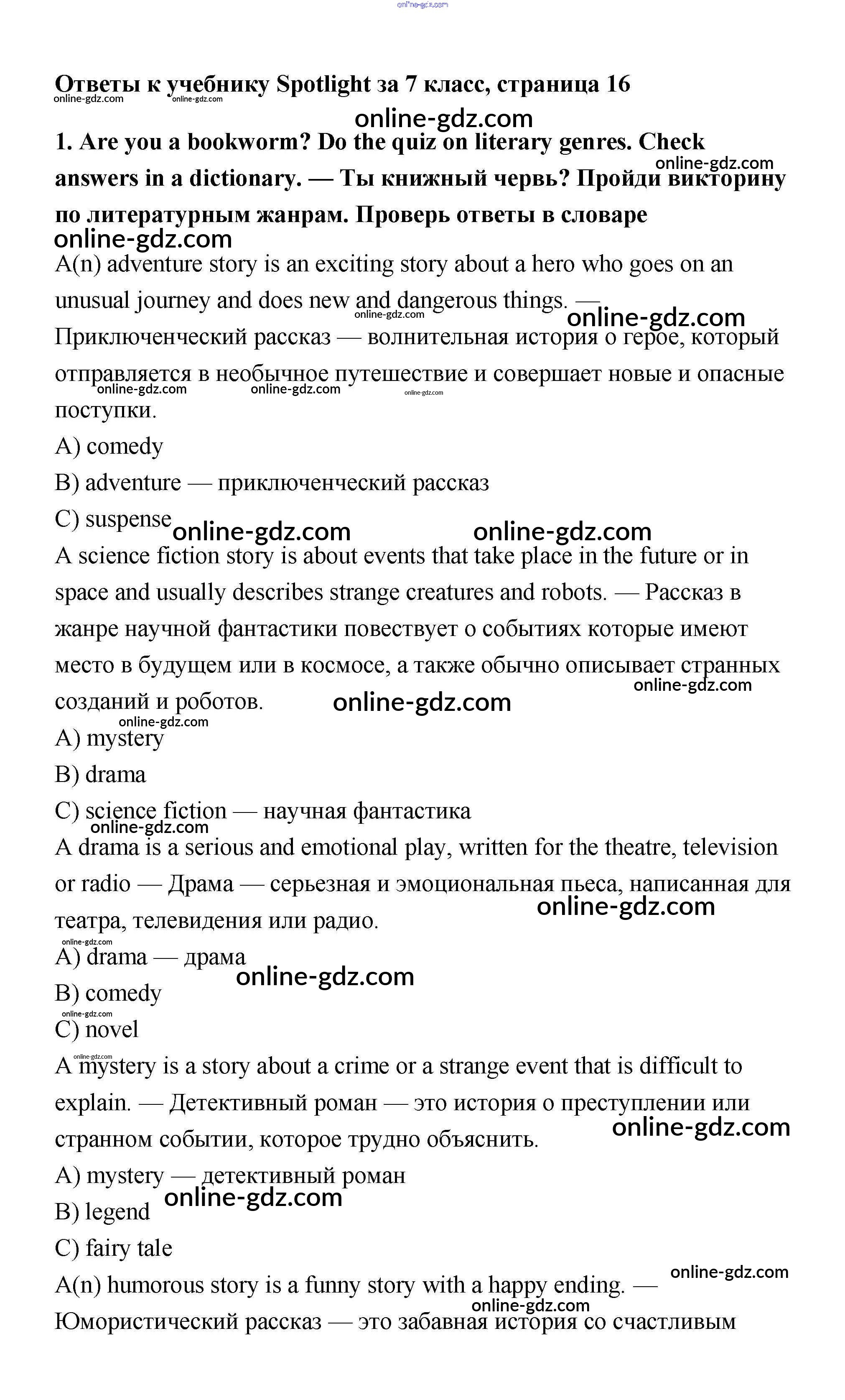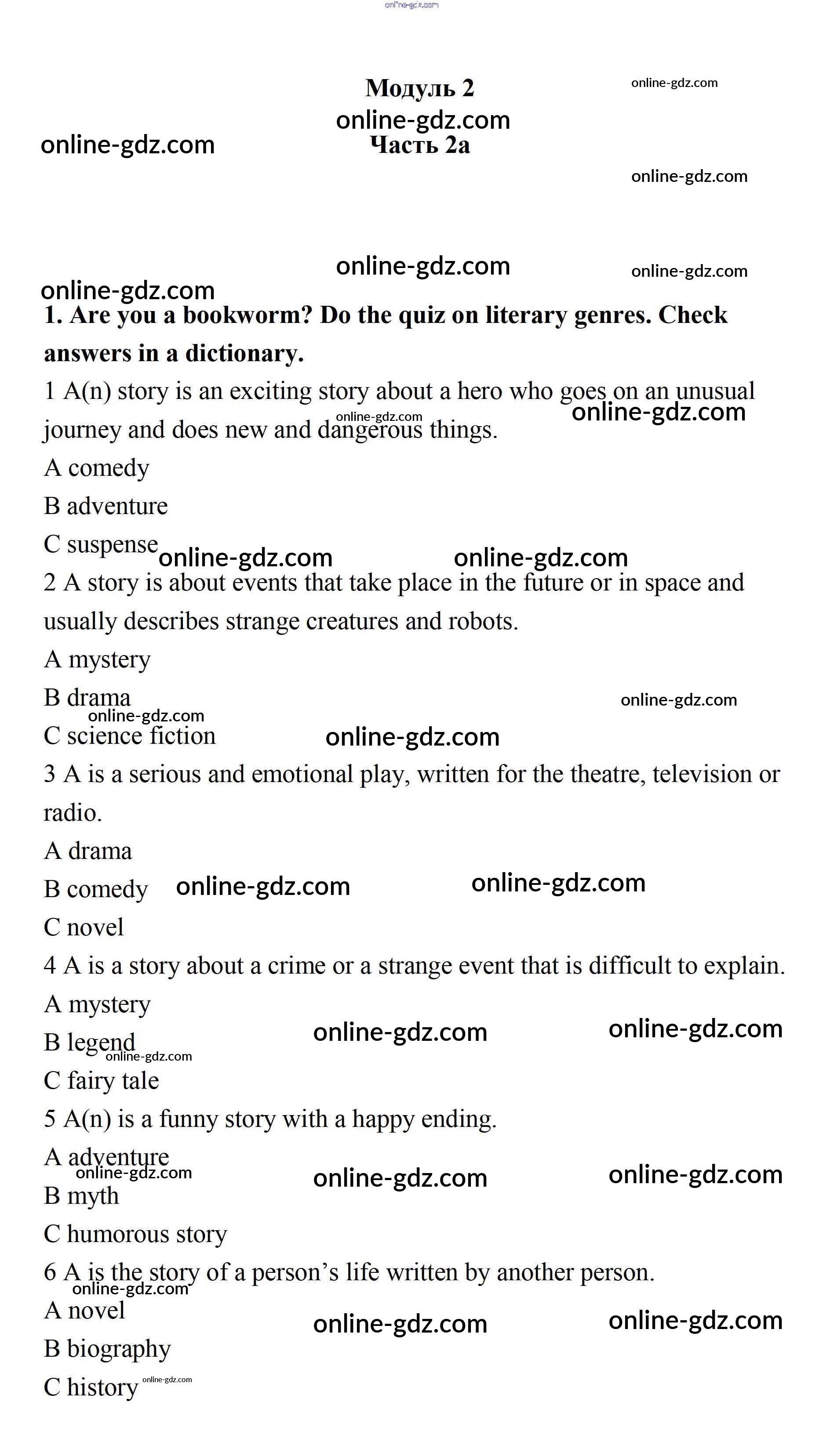 Готовые домашние задания по Английскому языку за 7 класс Учебник Ваулина, Дули Spotlight 2019 - Часть 2a Модуль 2 1