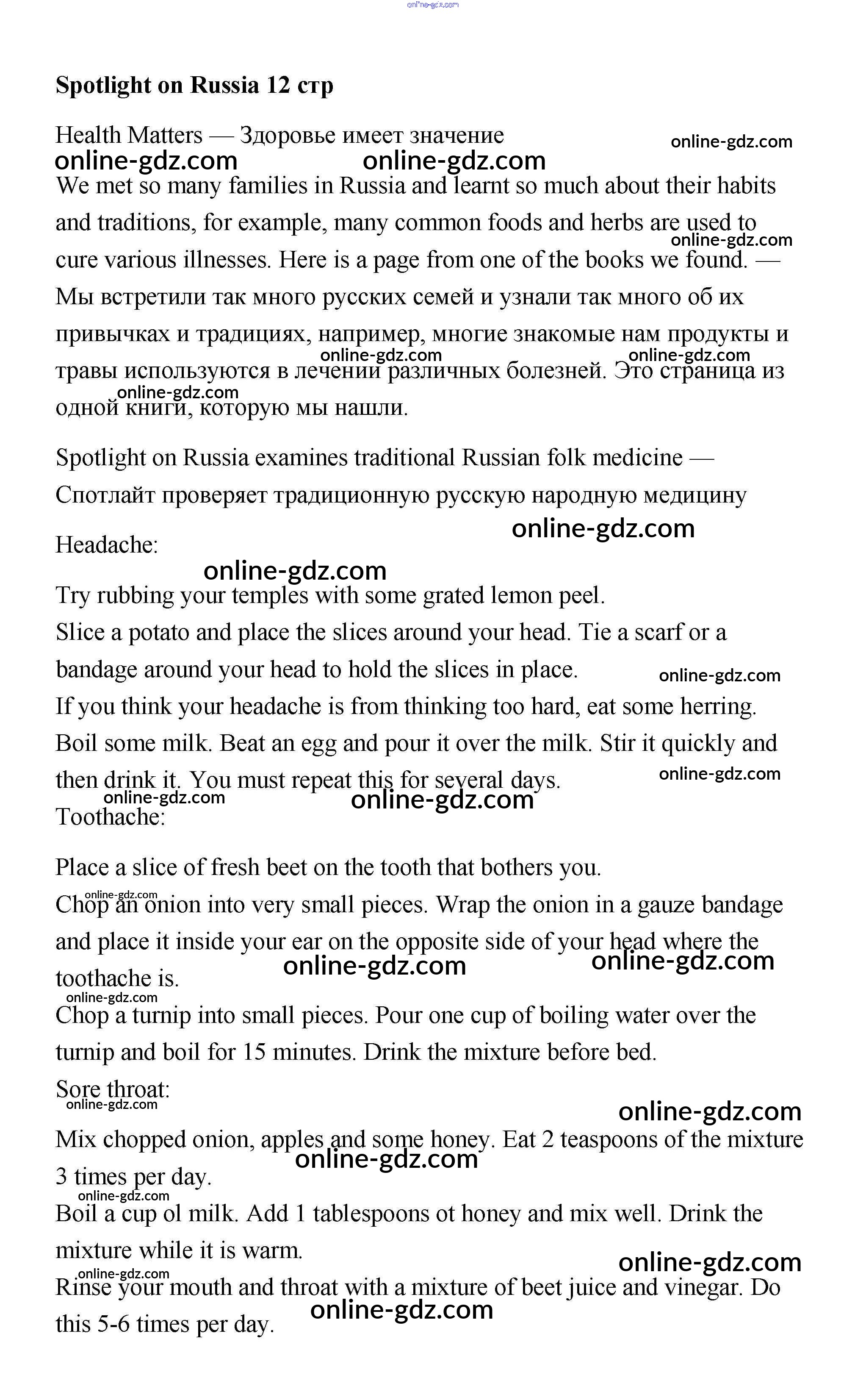 Готовые домашние задания по Английскому языку за 7 класс Учебник Ваулина, Дули Spotlight 2019 - Spotlight on Russia 12