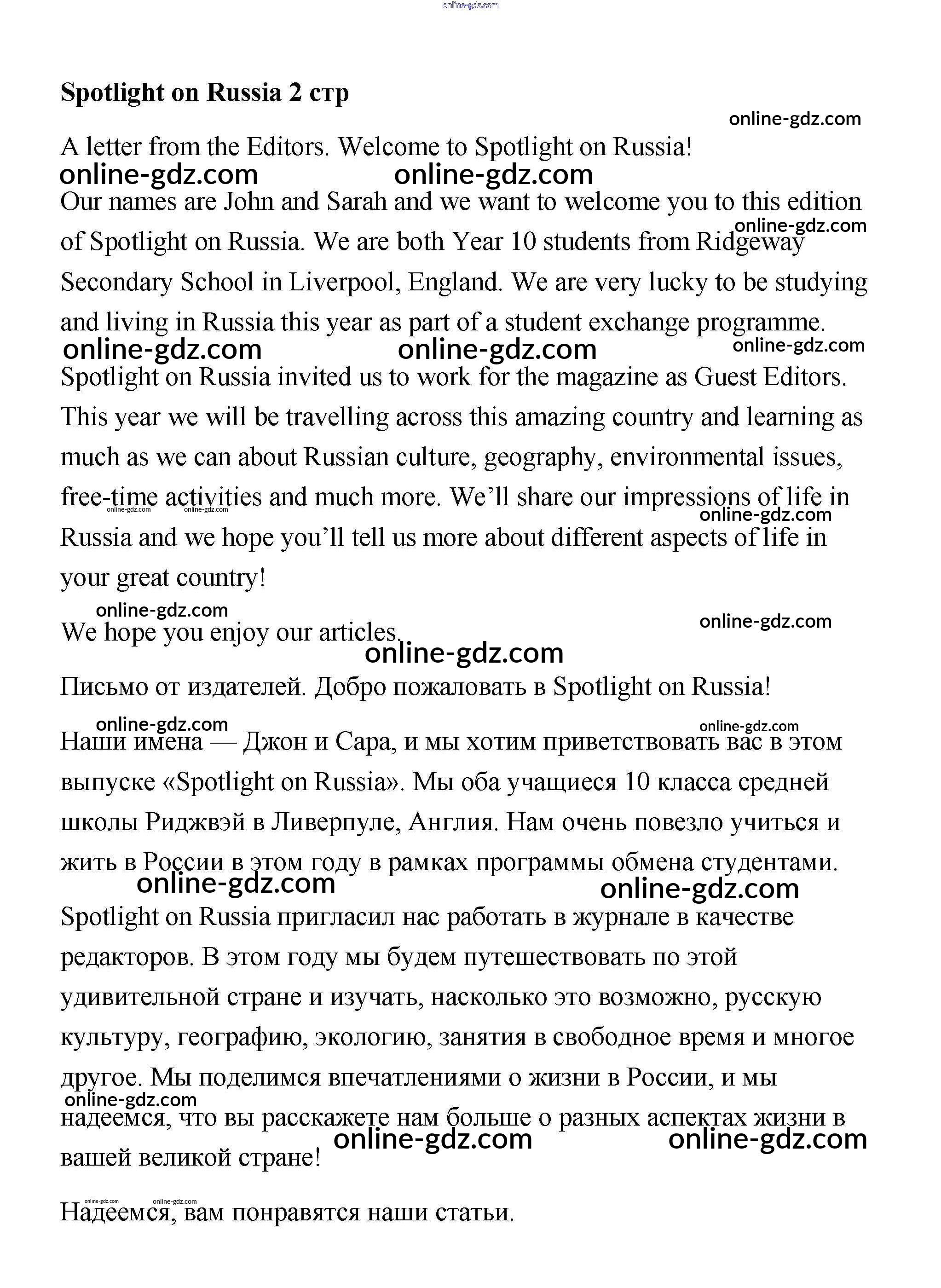 Готовые домашние задания по Английскому языку за 7 класс Учебник Ваулина, Дули Spotlight 2019 - Spotlight on Russia 2