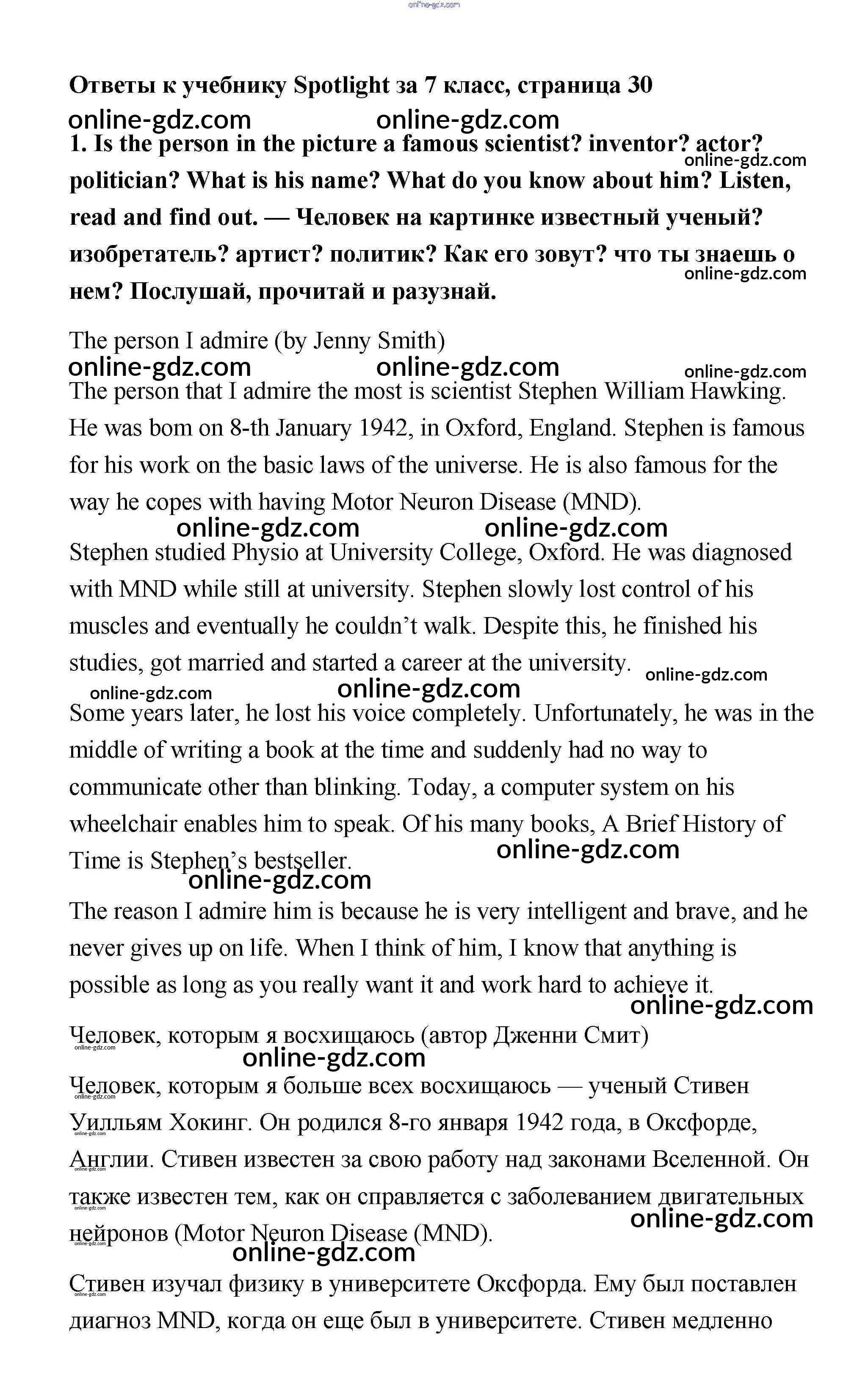 Готовые домашние задания по Английскому языку за 7 класс Учебник Ваулина, Дули Spotlight 2019 - Часть 3c Модуль 3 1